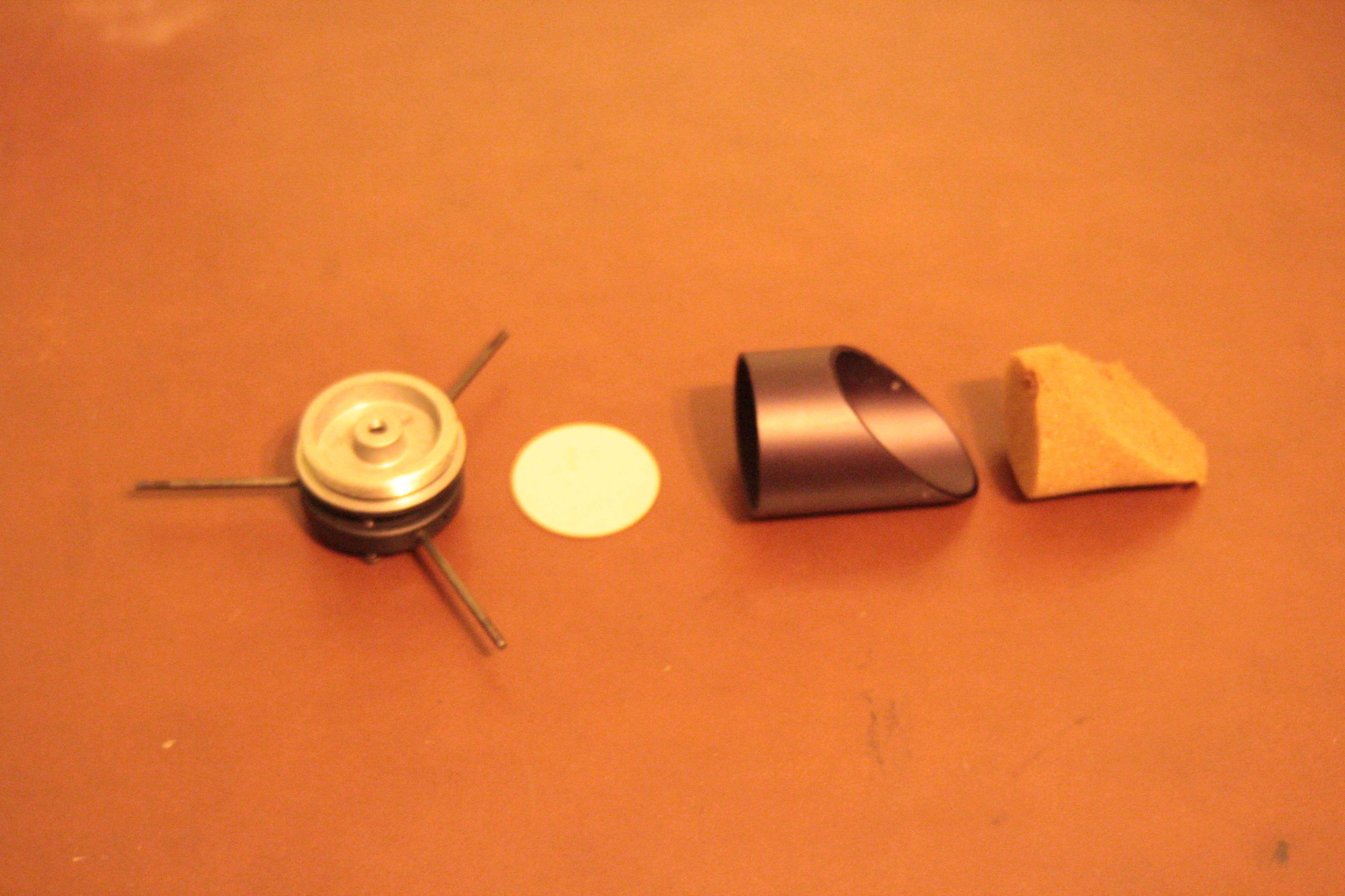 Merci Moot pour tes observations. Ci-dessous la photo des divers élèments : araignée, carton, support du miroir, mousse.