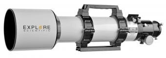 " En combinant un élément optique en FPL53 (Ohara, Japon) et un élément optique au lanthane, on obtient une correction chromatique qui correspond voire dépasse celle d'un triplet FPL53 - avec une mise en température beaucoup plus rapide, un poids moindre et une facture allégée. Une lentille de moins signifie également 2 reflets potentiels évités. Même au plus fort grossissement, l'image reste exempte d'aberration chromatique gênante. Cela signifie que le réfracteur rapide est non seulement très bien adapté pour l'astrophotographie et l'observation à grand champ, mais aussi pour la lune et les planètes."