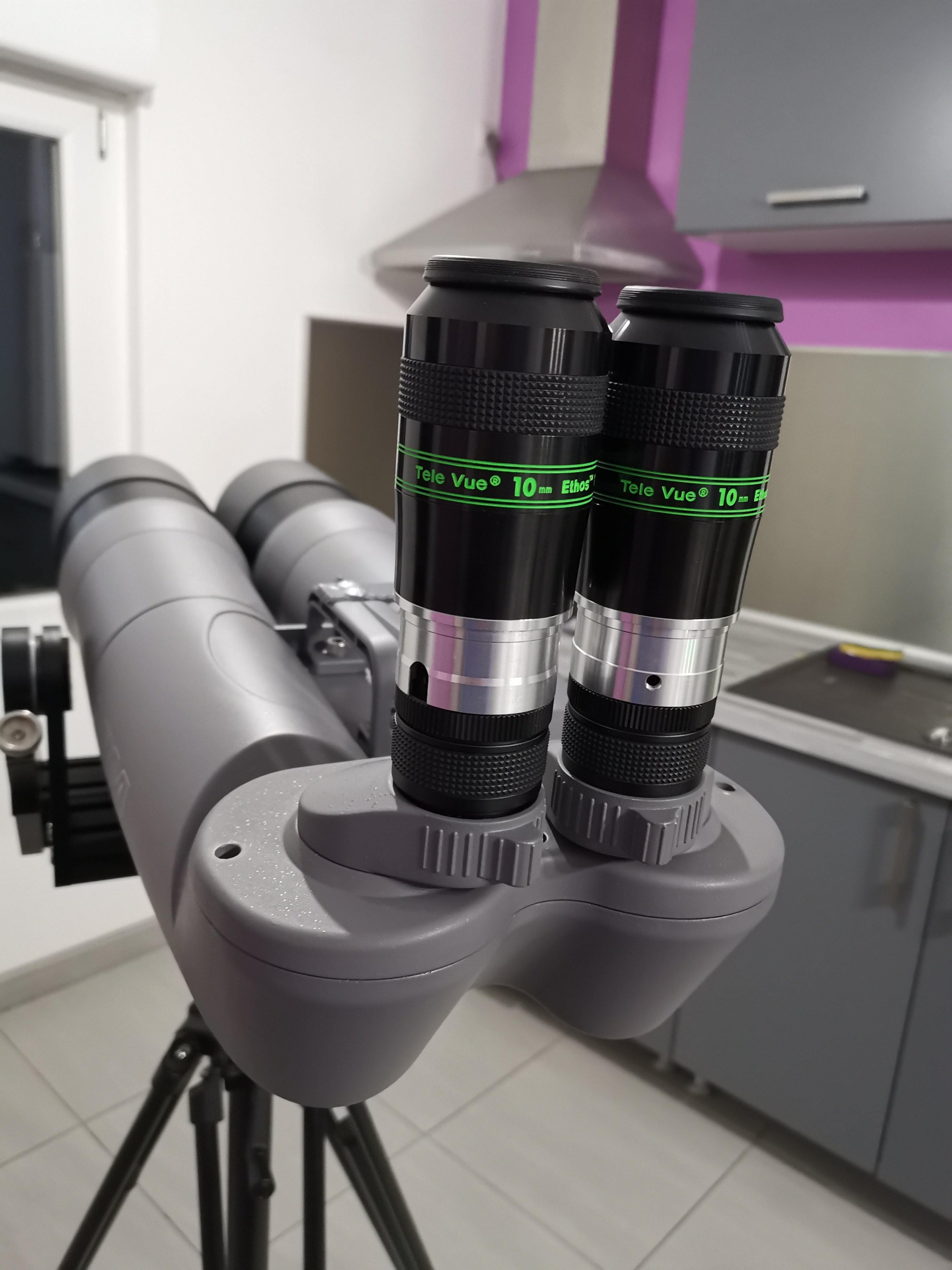 Avec des jumelles et des oculaires interchangeables, nous sommes confrontés à un soucis d'équilibrage sur l'axe de hauteur.
