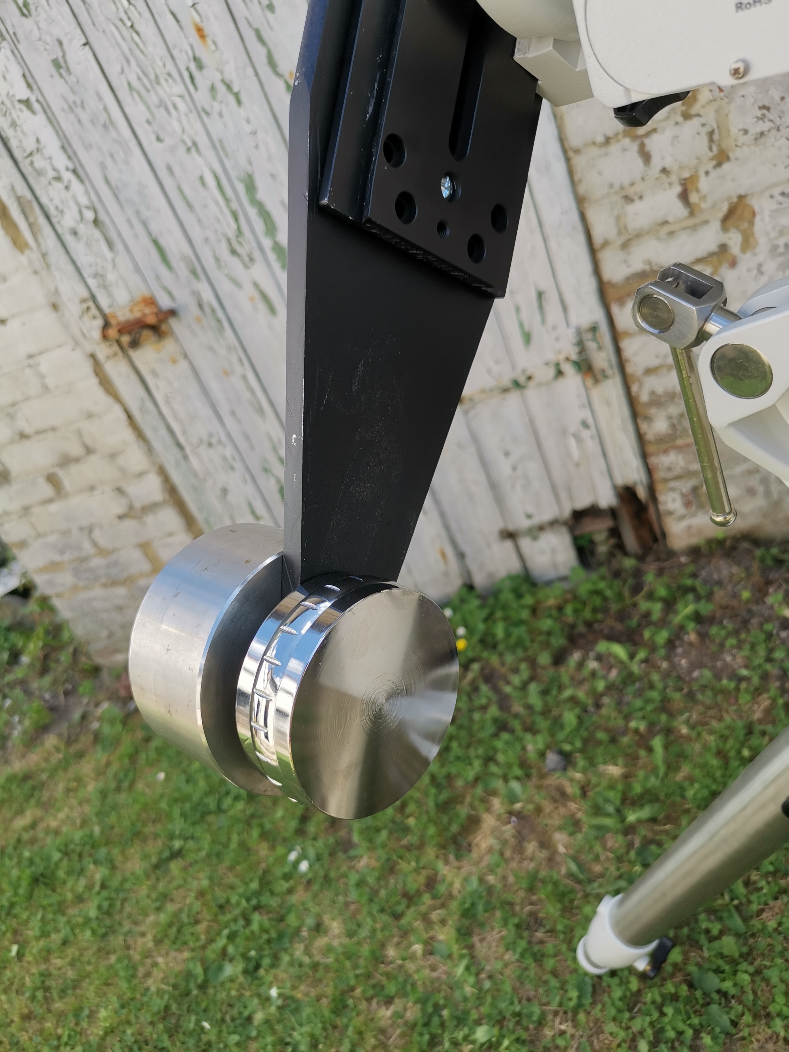 J'avais fait le même type de montage pour mon binoscope avec 2 bras de levier de part et autre et franchement je suis d'accord que c'est top et très fluide. Je m'étais fais une motorisation par joystick sur ma monture az mais je ne l'utilise même plus tellement c'est stable et ca porte les 18kg de maksutov/bras de bino/oculaire sans sourciller.