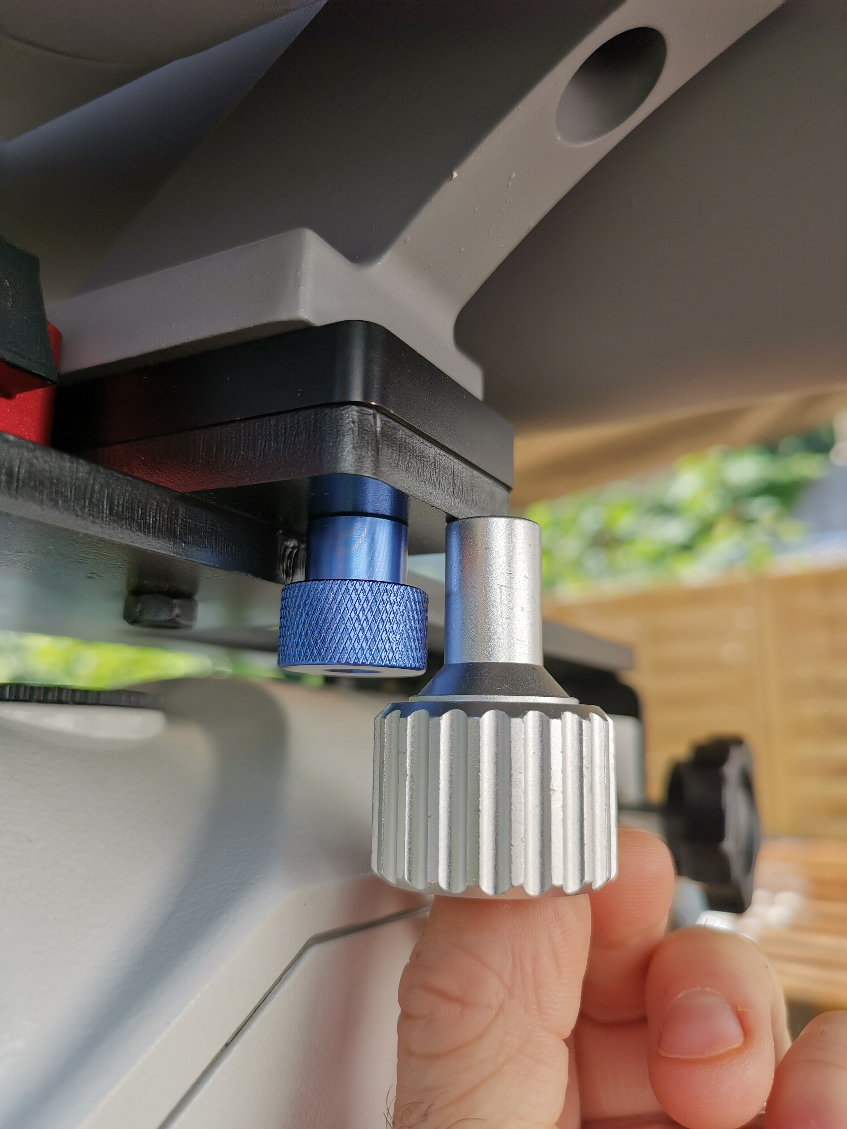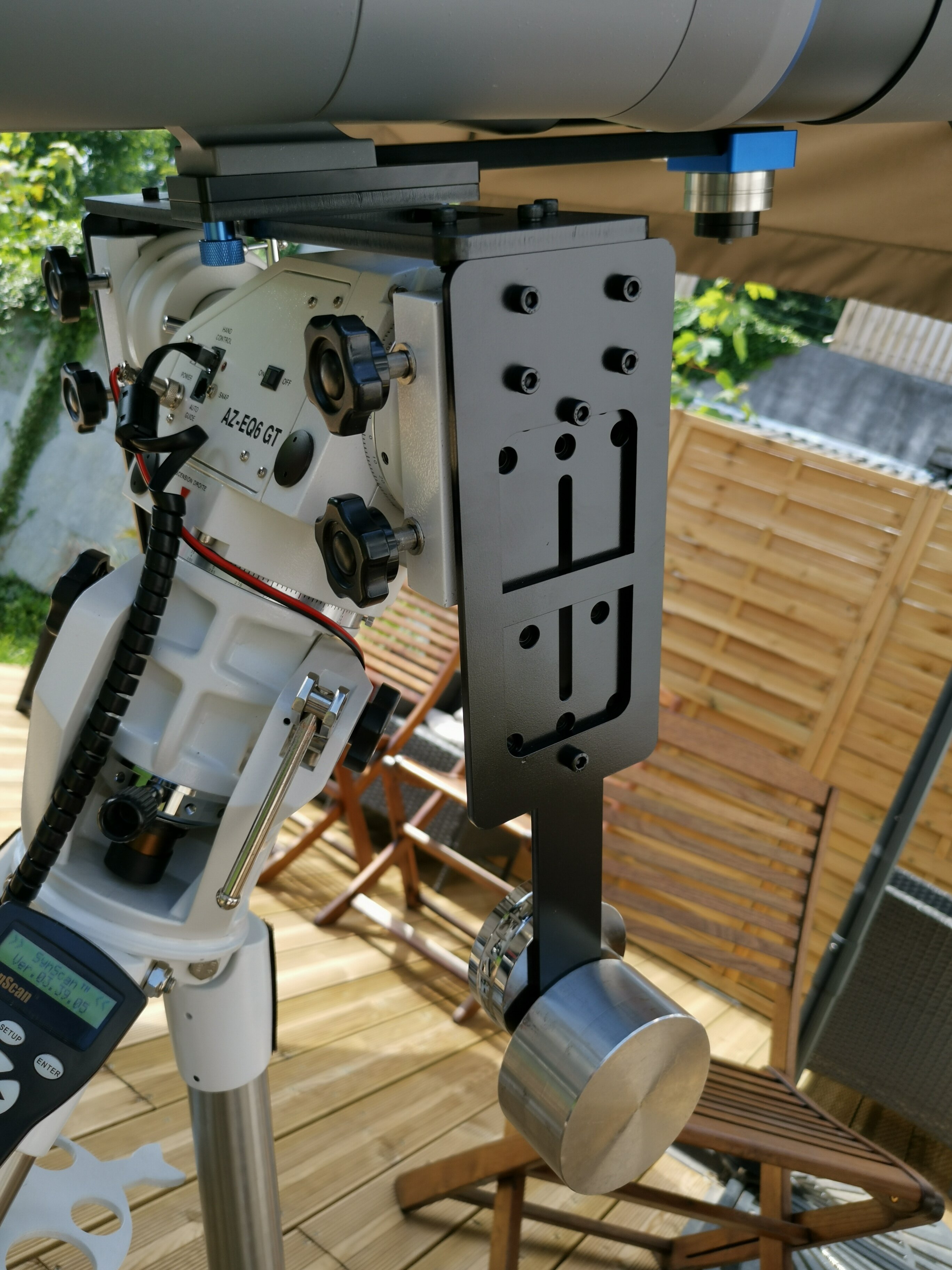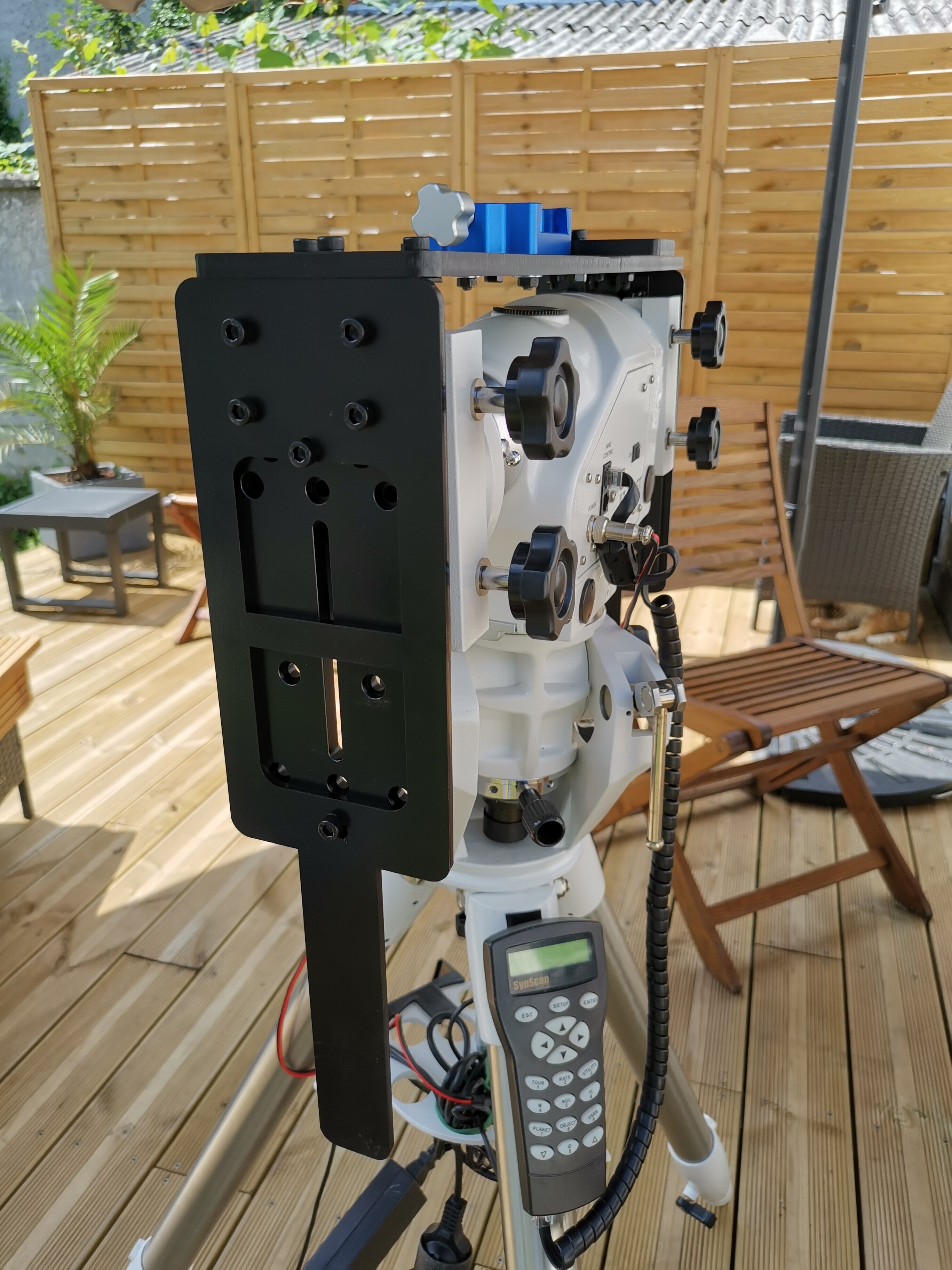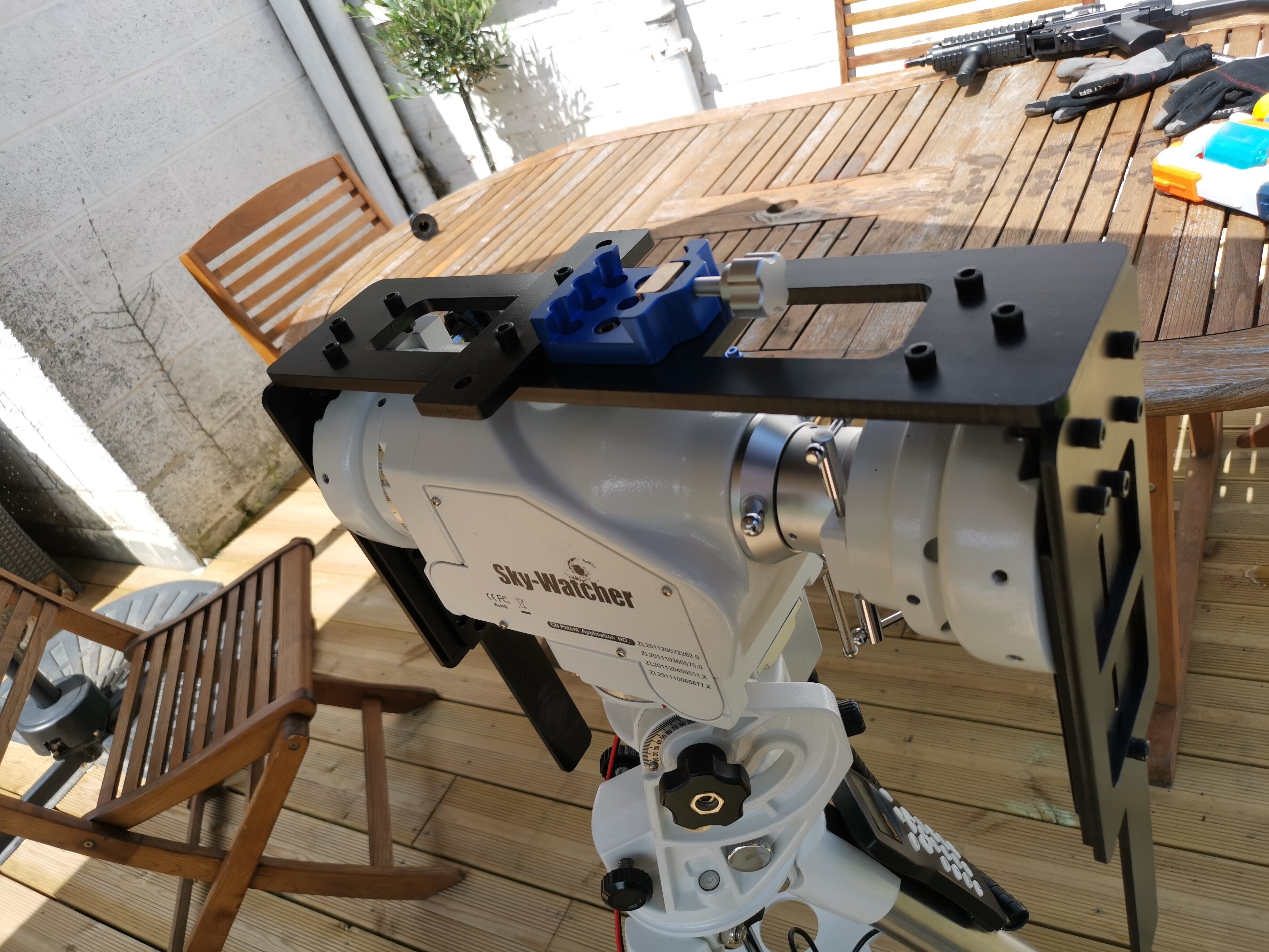Le support supérieur est d'épaisseur 8mm, je pense que j'aurai pu mettre 6mm.car déjà en 8mm ça ne bronche pas. Je me suis trompé dans une cote de 5mm sur les côtés. J'ai dû bidouiller un peu pour pourvoir fixer proprement les queues Losmandy, dommage 😅