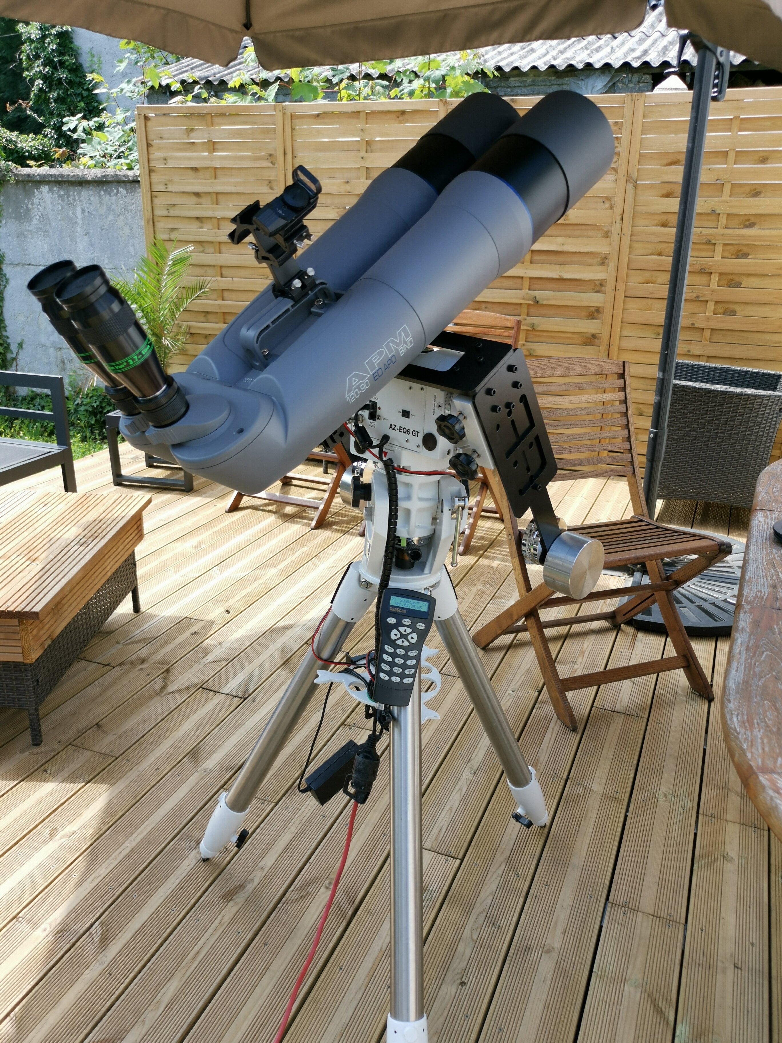 Juste ce que j'ai changé, c'est le trepied : un hercules geoptik sur roulettes + une rampe de mon garage au jardin : je sors le binoscope en 30s chrono 🥰 il sort même entre deux nuages du coup...