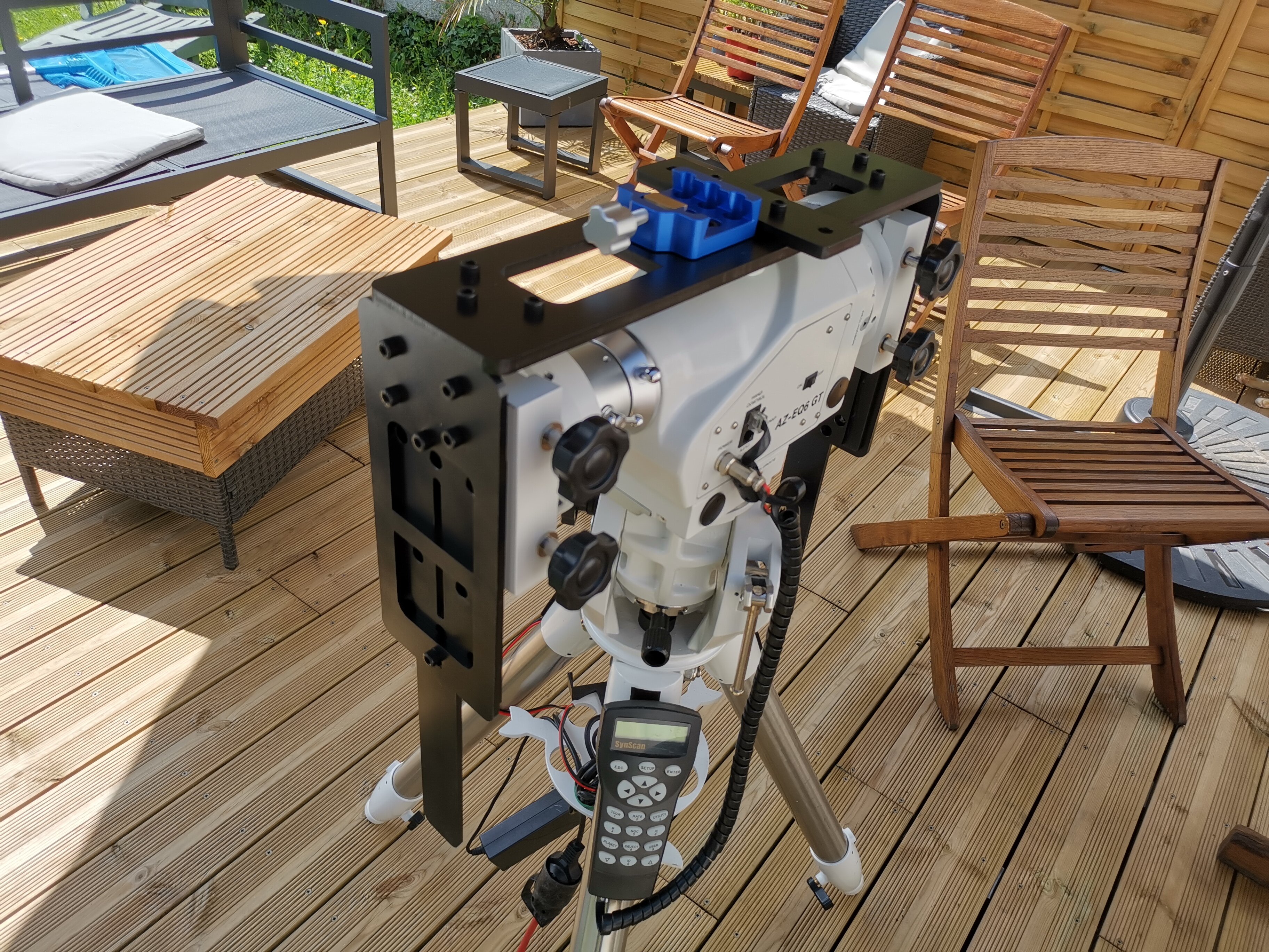 Fini ! Monture type U pour poser les Bino APM 120 sur l'azeq6 Absolument heureux du résultat, c'est parfait à mes yeux. A moi le Goto pour les bino !