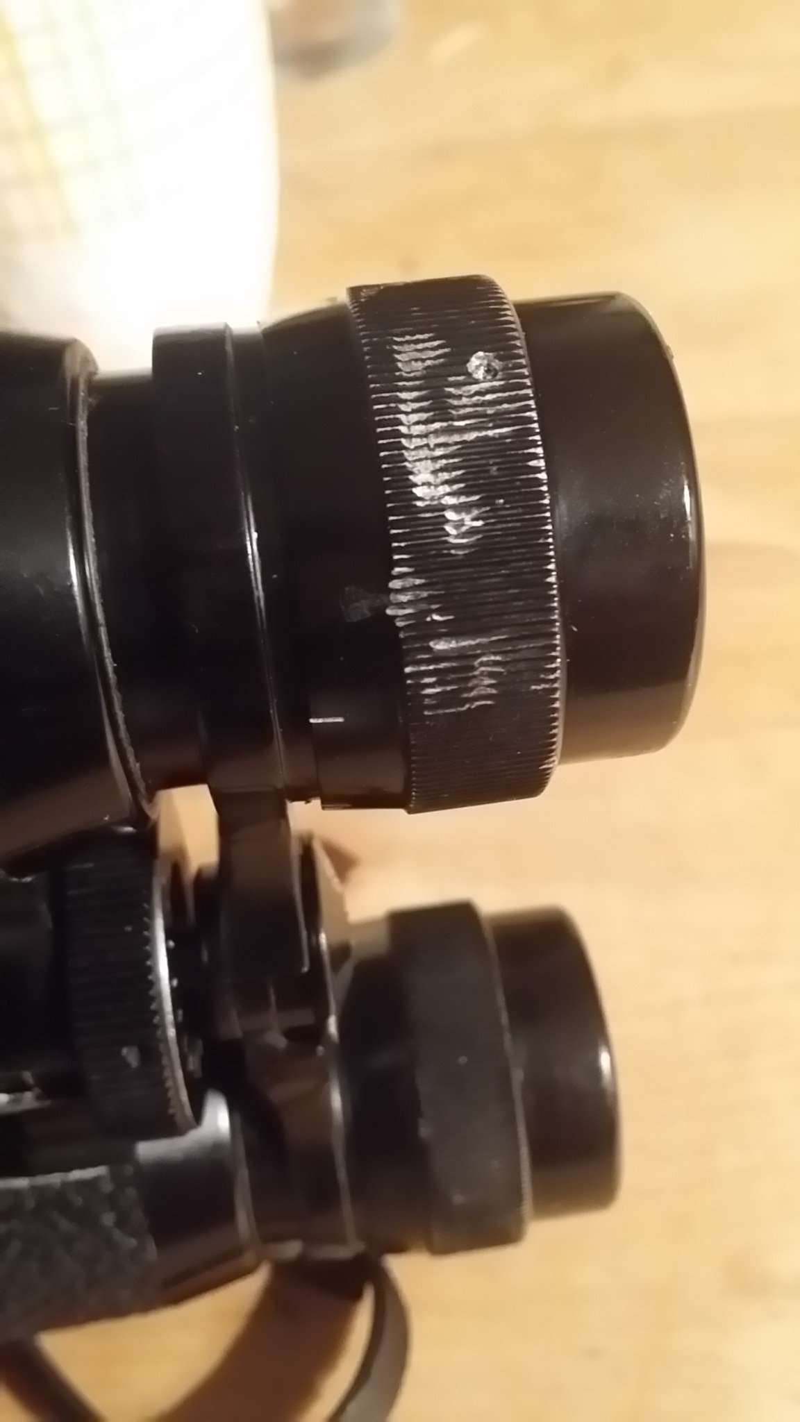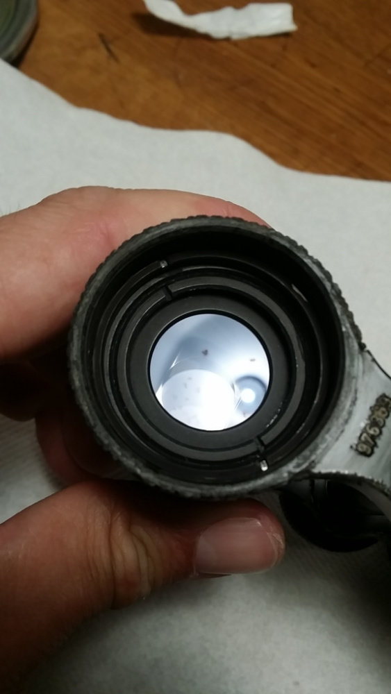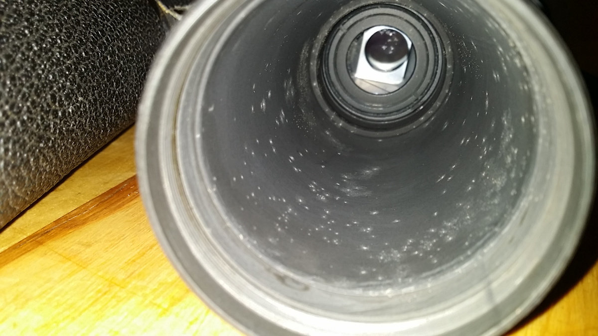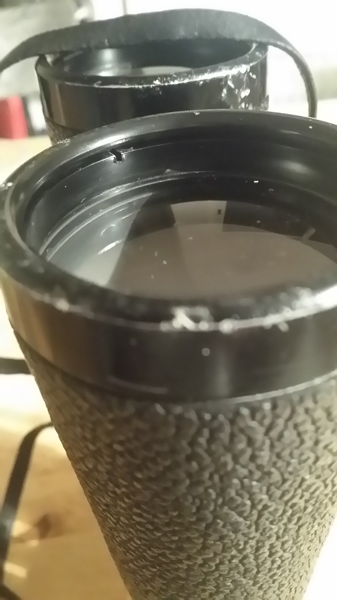 Guilaume Posté 29 mars 2019 Posté 29 mars 2019 Bonjour, Il y a peu je suis tombé sur une paire de jumelles datant des années 60. Ce sont des jumelles allemandes avec prismes en toit, des 10x50, de environs 830g, dans un piteux état. Je n'ai pas songé à prendre une photo avant le début du nettoyage. 1- les lentilles frontales: champi et gras cahoutchouteux. Des champis également sur les prismes Une fois nettoyés, quelques ombres restent sur les prismes, mais les doublets sont nickels, le revêtement bleuté est épargné. L'espèce de graisse noire vient d'un joint torique en caoutchouc qui isole la lentille frontal de la bague frontale métallique qui a fondu et graissé toute l'optique et le barillet. (il se trouvait dans l'interstice sur la photo) Le barillet est solidaire du doublet, chose assez surprenante, les lentilles sont scellées ce qui rend le doublet étanche. C'est propre et bien ajusté. 2 - la partie oculaire: L'oculaire réglable est bloqué et a été forcé. Démontage + dégrippage. Ça marche. Ce qui est interessant, c'est qu'au démontage de chaque pièce, je trouve tout très bien lubrifié, malgré la 50aine d'années de l'objet. Tout s'emboîte parfaitement, il n'y a aucun jeu. C'est de la bonne mécanique. Les oculaires ont un léger voile sur les bords, certainement dû à la colle qui a viellit. Après un remontage, un petit test, les étoiles sont piquées, les bodes et m51 sont visibles, m3 aussi. Le test est rapide mais concluant. Ces jumelles me conviennent. Dans les choses à venir, remplacer la cuirette qui se craquelle, remplacer le joint torique frontal, retaper l'étui en cuir très sec et abîmé (la sangle a trempé 1/2h dans de l'huile d'olive avant de redevenir souple) Trouver un système pour le fixer sur un pied car n'y a pas de pas de vis pour le mettre sur un trépied. à suivre ... Merci. 1 1