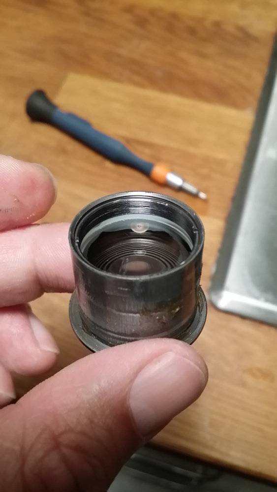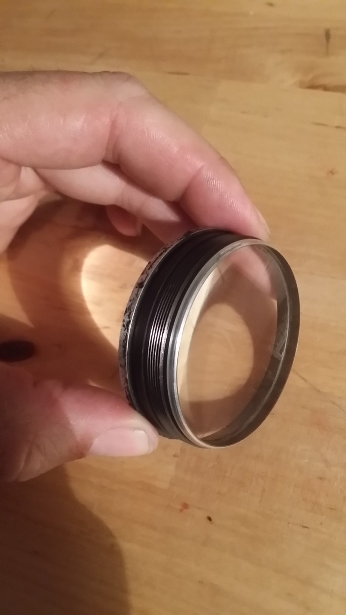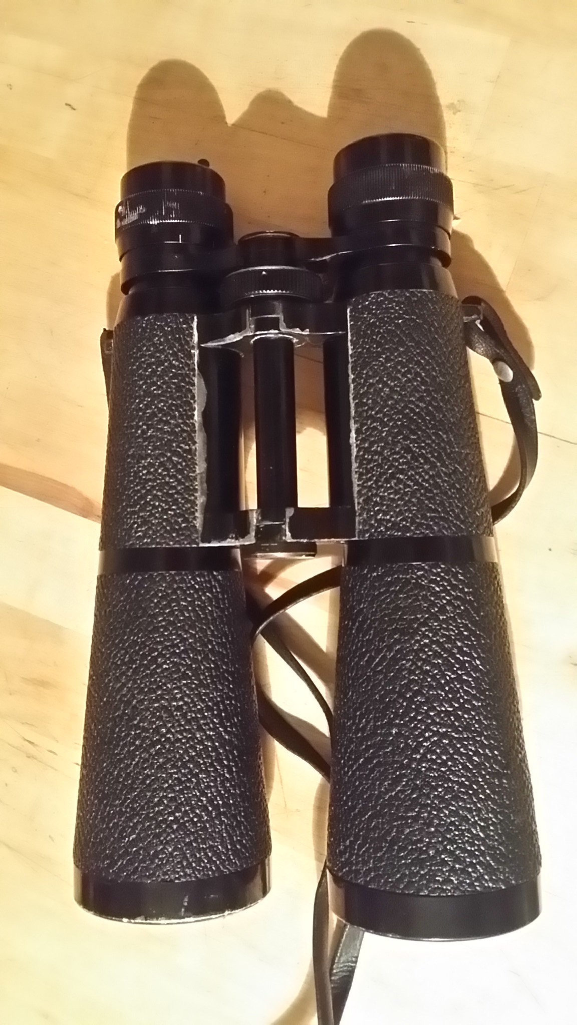 Guilaume Posté 29 mars 2019 Posté 29 mars 2019 Bonjour, Il y a peu je suis tombé sur une paire de jumelles datant des années 60. Ce sont des jumelles allemandes avec prismes en toit, des 10x50, de environs 830g, dans un piteux état. Je n'ai pas songé à prendre une photo avant le début du nettoyage. 1- les lentilles frontales: champi et gras cahoutchouteux. Des champis également sur les prismes Une fois nettoyés, quelques ombres restent sur les prismes, mais les doublets sont nickels, le revêtement bleuté est épargné. L'espèce de graisse noire vient d'un joint torique en caoutchouc qui isole la lentille frontal de la bague frontale métallique qui a fondu et graissé toute l'optique et le barillet. (il se trouvait dans l'interstice sur la photo) Le barillet est solidaire du doublet, chose assez surprenante, les lentilles sont scellées ce qui rend le doublet étanche. C'est propre et bien ajusté. 2 - la partie oculaire: L'oculaire réglable est bloqué et a été forcé. Démontage + dégrippage. Ça marche. Ce qui est interessant, c'est qu'au démontage de chaque pièce, je trouve tout très bien lubrifié, malgré la 50aine d'années de l'objet. Tout s'emboîte parfaitement, il n'y a aucun jeu. C'est de la bonne mécanique. Les oculaires ont un léger voile sur les bords, certainement dû à la colle qui a viellit. Après un remontage, un petit test, les étoiles sont piquées, les bodes et m51 sont visibles, m3 aussi. Le test est rapide mais concluant. Ces jumelles me conviennent. Dans les choses à venir, remplacer la cuirette qui se craquelle, remplacer le joint torique frontal, retaper l'étui en cuir très sec et abîmé (la sangle a trempé 1/2h dans de l'huile d'olive avant de redevenir souple) Trouver un système pour le fixer sur un pied car n'y a pas de pas de vis pour le mettre sur un trépied. à suivre ... Merci. 1 1