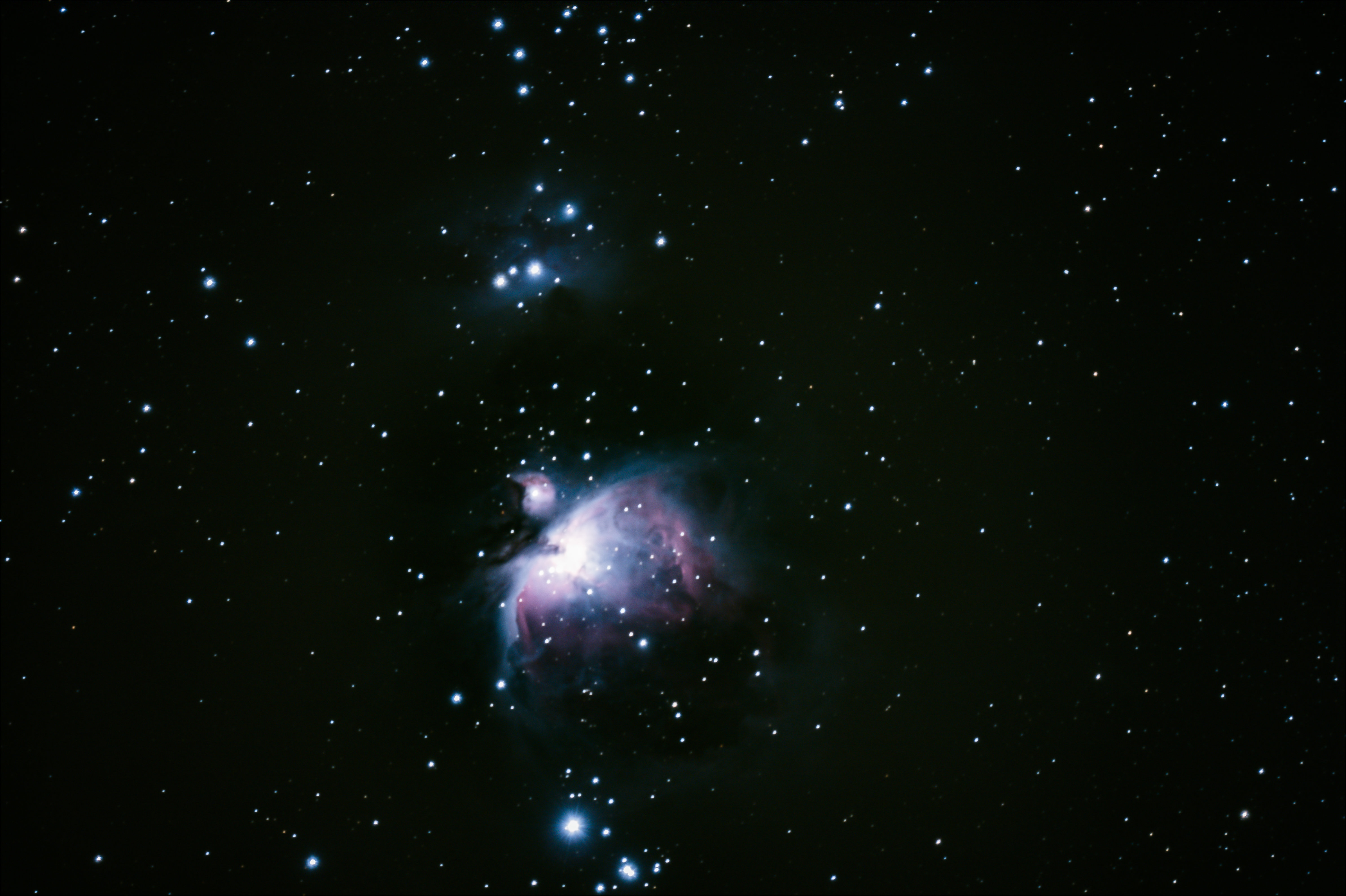 Je l'utilise peu mon Samyang. Néanmoins voici une petite de la neb d'Orion prise avec mon EOS50D et la SA (Et le fameux Samyang 500 catadioptrique). ça donne une idée des cadrages potentiels. La MAP était mauvaise car c'est le gros point faible de cet objectif. La MAP est micrométrique et ne demande qu'à bouger au mondre effleurement. Bref... Mais bon. Pour un setup qui tient dans un petit sac à dos. Faut pas trop en demander .. non ? 😉