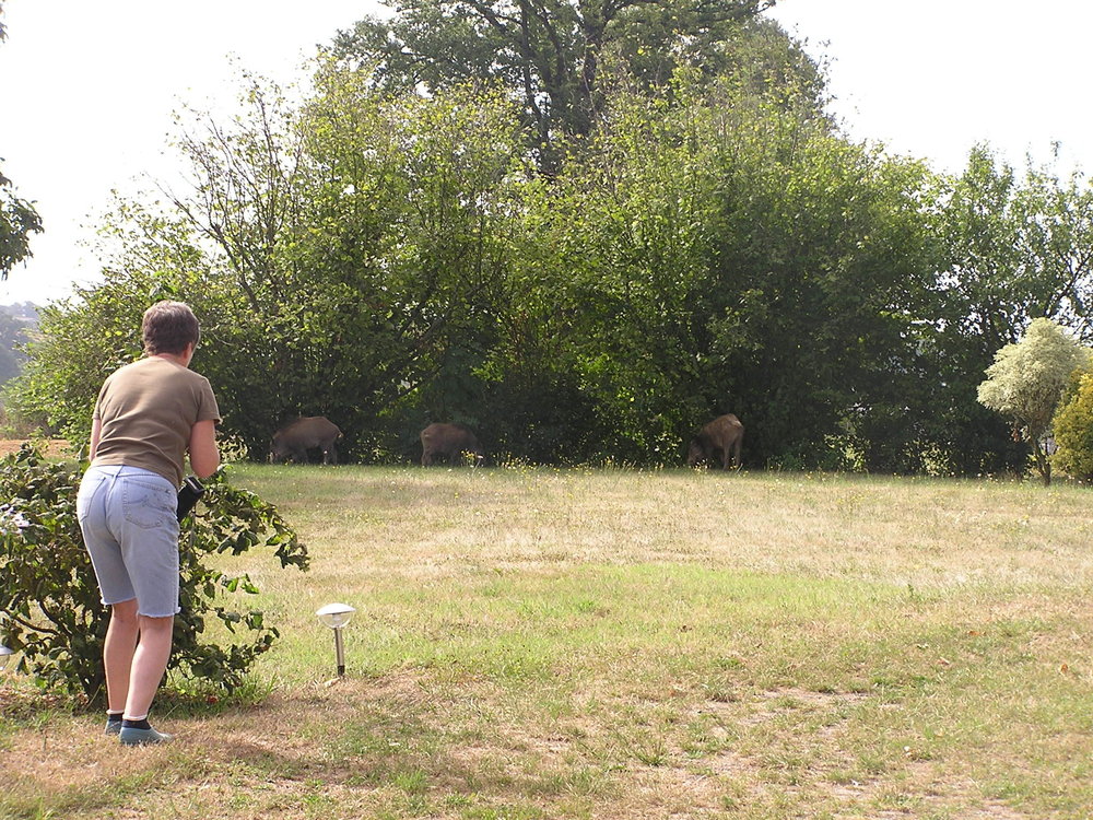 Sur notre site, on est entouré de champs de maïs et champs de légumes en tout genre... ça grouille de sangliers... la seule crainte que j'ai, c'est pour la chienne qui aurait tendance à aller les voir. Et depuis des années qu'on y observe, jamais un seul n'est venu jusqu'à nous, se contentant de rester caché dans le maïs.