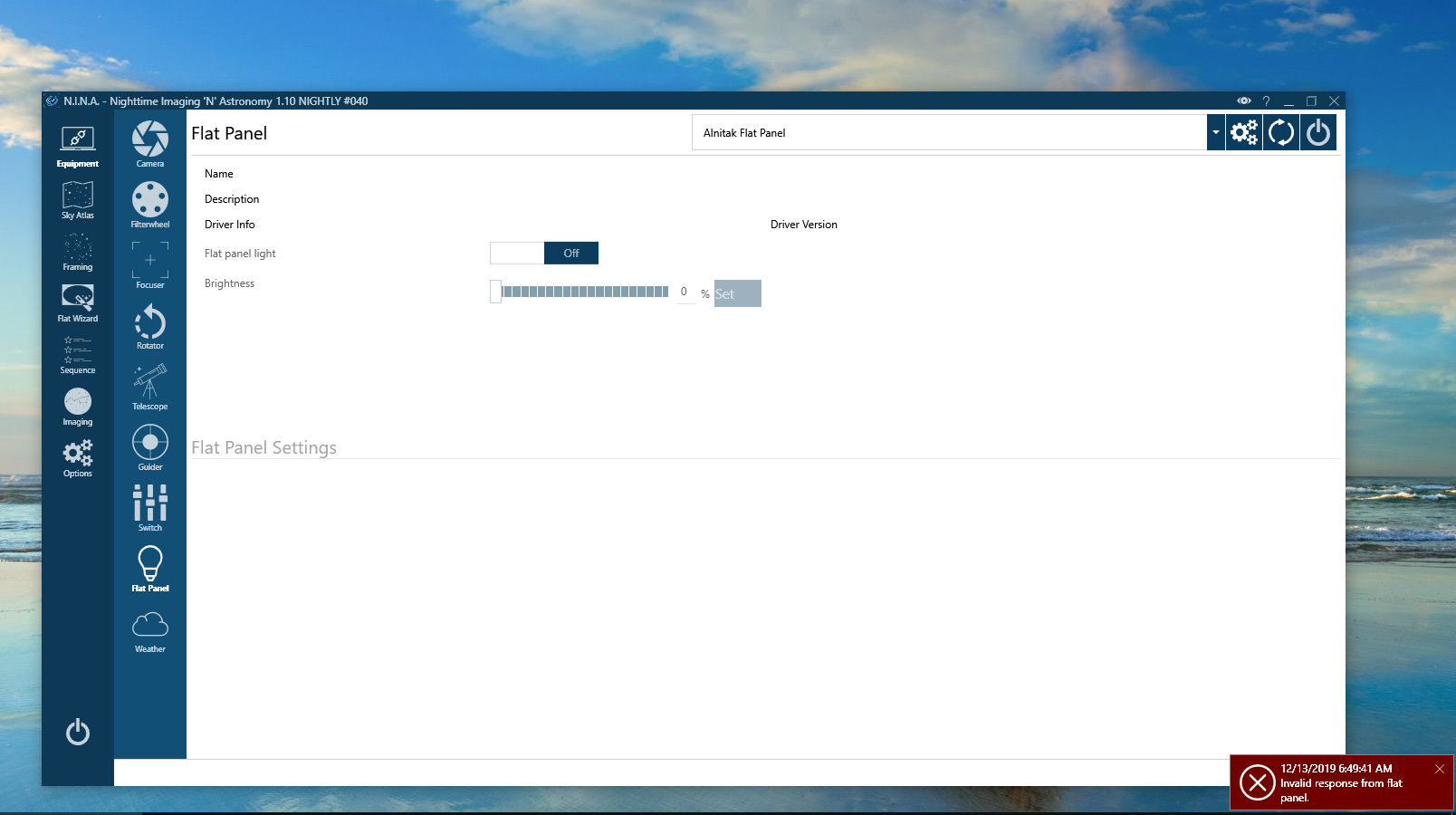 [12/14/19 20:00:15.391][DEBUG] [Main Thread] Alnitak Flat Box - Could not get status.