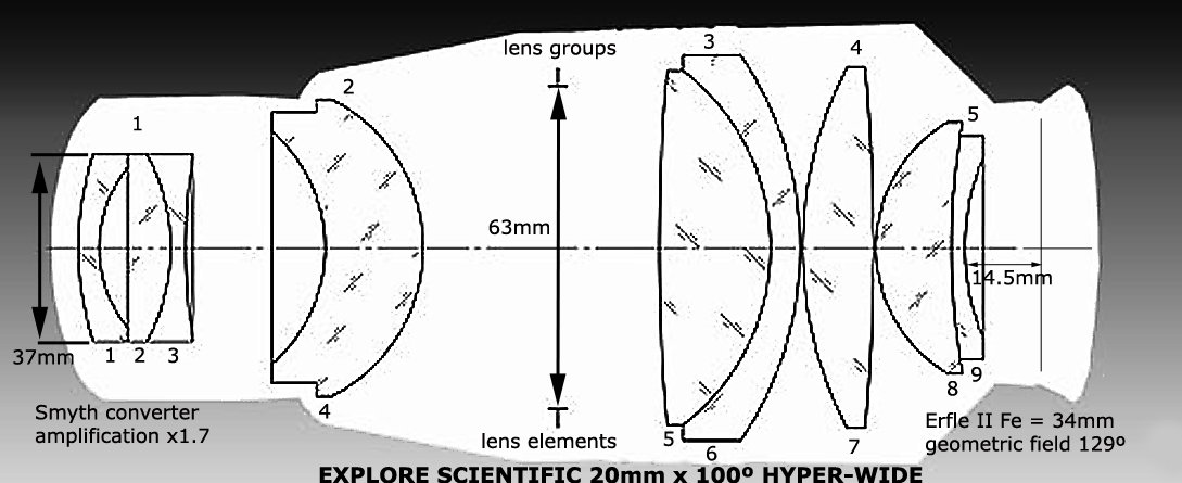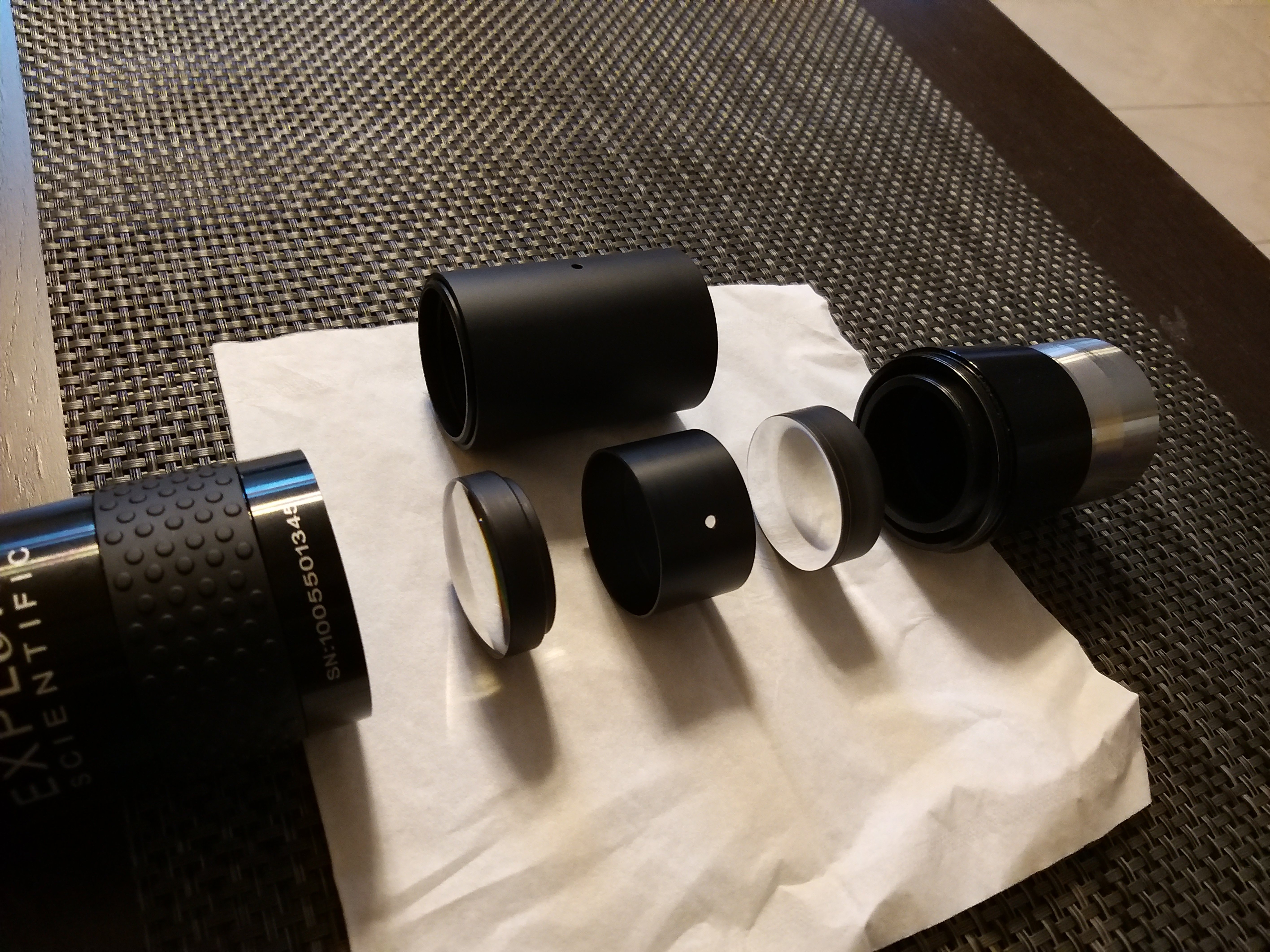 Pour vérifier ses histoires de nombre de lentilles, si ton oculaire pèse moins de 620g (source site explore scientifics), c'est qu'il manque qqch.