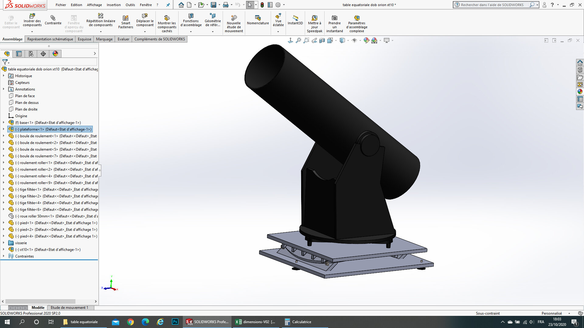 Avec les plans de magnitude78 ca ne fonctionnera pas, la table ne fait que 38cm. Or la base de mon dob fait 60cm de diamètre. Il faut donc tout redimensionner.
