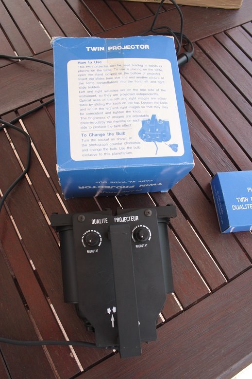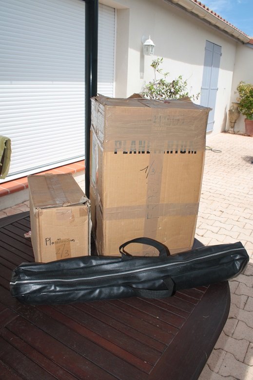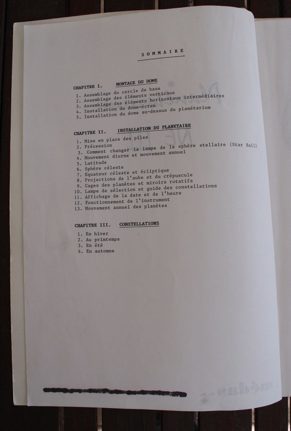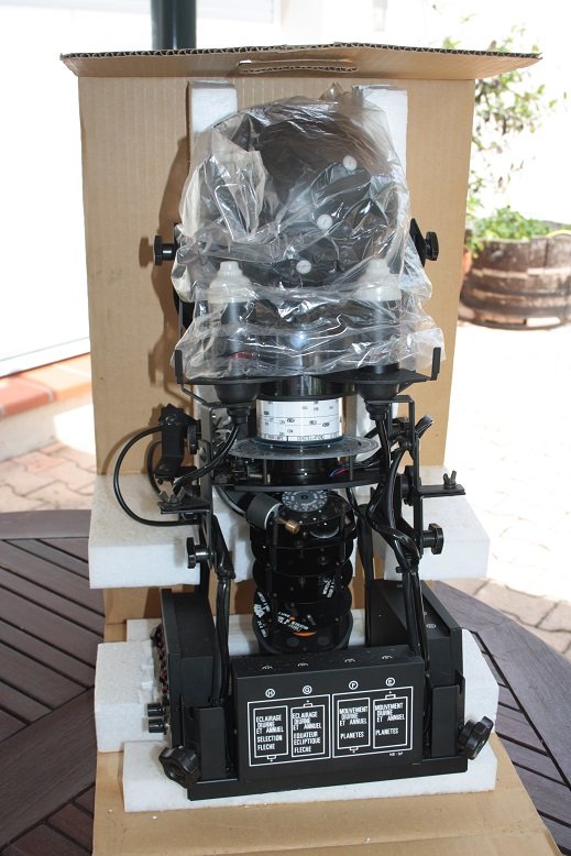 astroim Posté 23 juin 2019 Posté 23 juin 2019 (modifié) Bonjour à tous, Alors, voici le NE III que je possède, premier message pour son déballage et ce que l'on y trouve. Deux colis et un sac plastique, Dans le sac plastique se trouvent les pièces de montage de la structure du dôme, le dôme sous forme de demi sphère toile PVC, noir côté extérieur et blanc dedans, les quatre pièces pour la fixation du dôme monté sur le planétarium, On ouvre le gros colis, Tout est bien calé, Et voici l'animal encore endormi, Pas d'erreur sur la marque, On y trouve aussi la doc, quelques extraits, On ouvre à présent le petit carton, Un projecteur double et ses diapos de constellations, (perso je l'ai jamais utilisé) Un kit de maintenance, Et une boite de paysages à projeter sur l'horizon sous le planétarium, Le planétarium et ses accessoires semblent au complet. Toutes les ampoules fonctionnent, les motorisations aussi, reste plus qu'à l'utiliser. Voilà, la suite au prochain numéro. Franck Modifié 23 juin 2019 par astroim