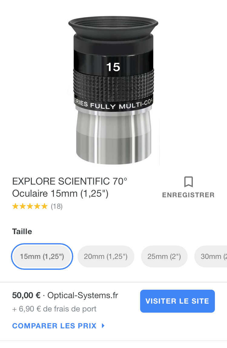 Choix oculaire pour lunette 90/910