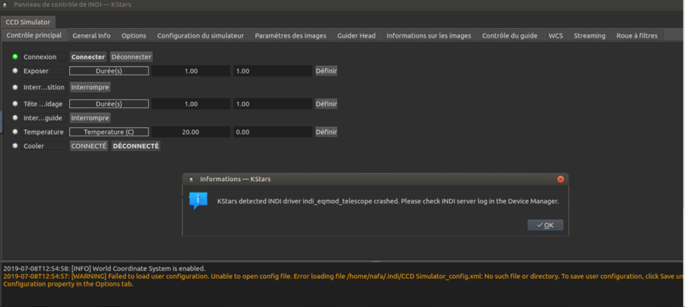 Mise a jour effectuée, j'ai tout rebranché , j'ai ouvert kstar, puis ekos, et là, suspens!!!!!!!! ça marche!!!!!!