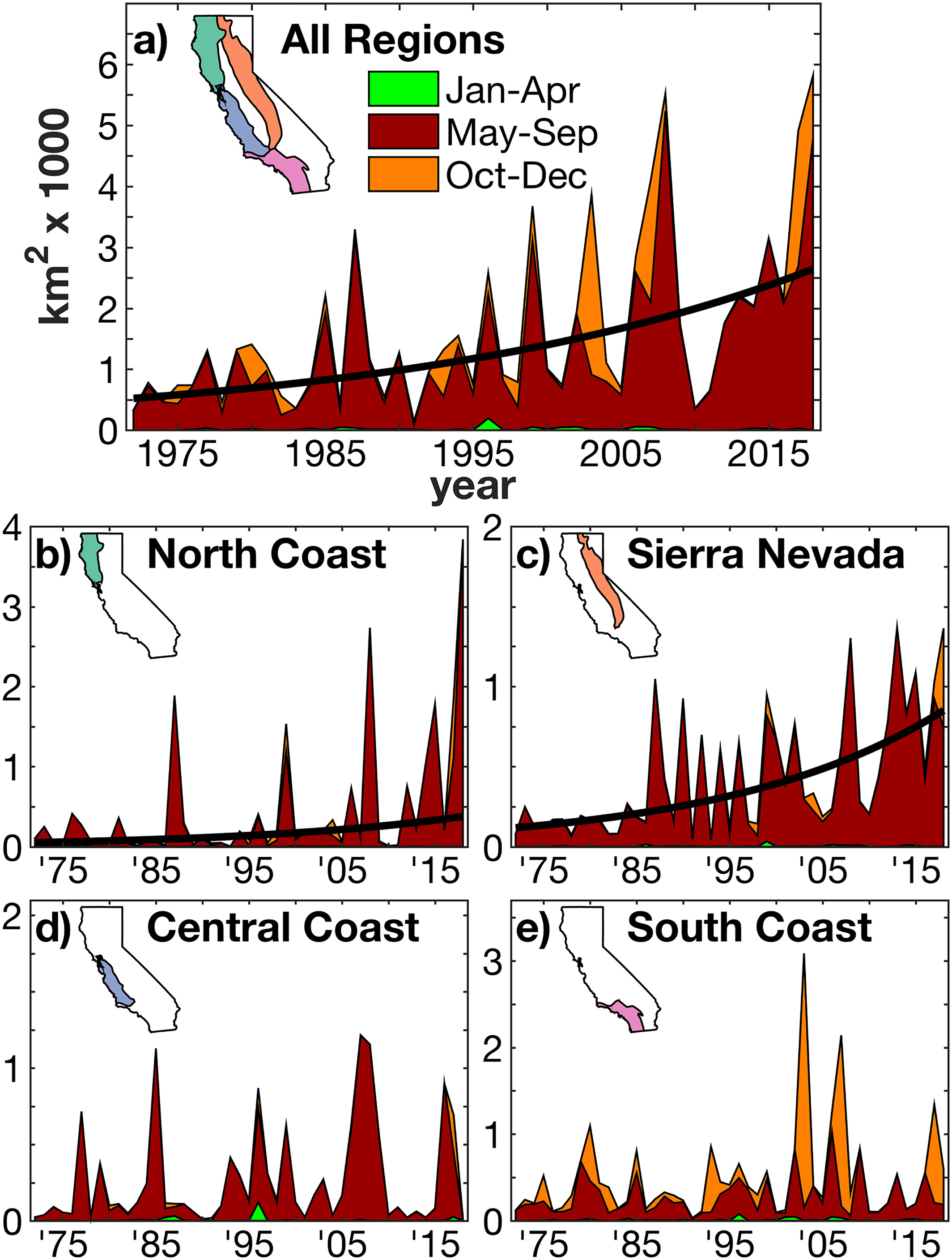L'étude en question, intitulée "Observed Impacts of Anthropogenic Climate Change on Wildfire in California" est en accès libre et chiffre surface brûlée et fréquences.