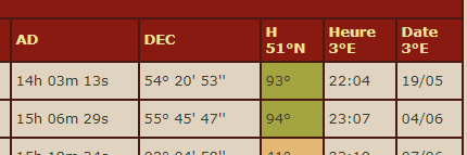 Ce serait -à mon avis- un gros plus pour les astram. Je viens de consulter la page de l'épheméride, c'est vraiment parfait! Cela permet de préparer ses soirées très simplement, tout apparait dans l'ordre. Il y a longtemps que je cherche un site tel que le tien, encore bravo pour ce travail!