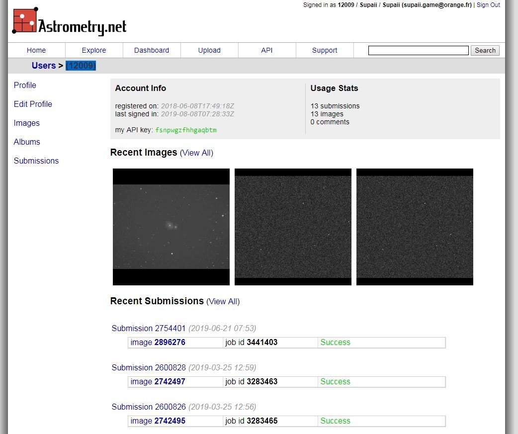 jjc Posté 8 août 2019 Posté 8 août 2019 Bonjour Supaii, Je ne connaissais pas cette histoire de compte, avec une clé récupérable dans Kstars/Ekos. Intéressant. Avec mon SC 8" et ma petite ccd (petit champ), je fais également une résolution par le site astrometrie.net pour déterminer exactement la focale du SC. Si je ne le fais pas, la résolution astrométrique peut planter. Il y a 2 utilisateurs de Ekos sous linux dans le Val d'Oise. Beau score.