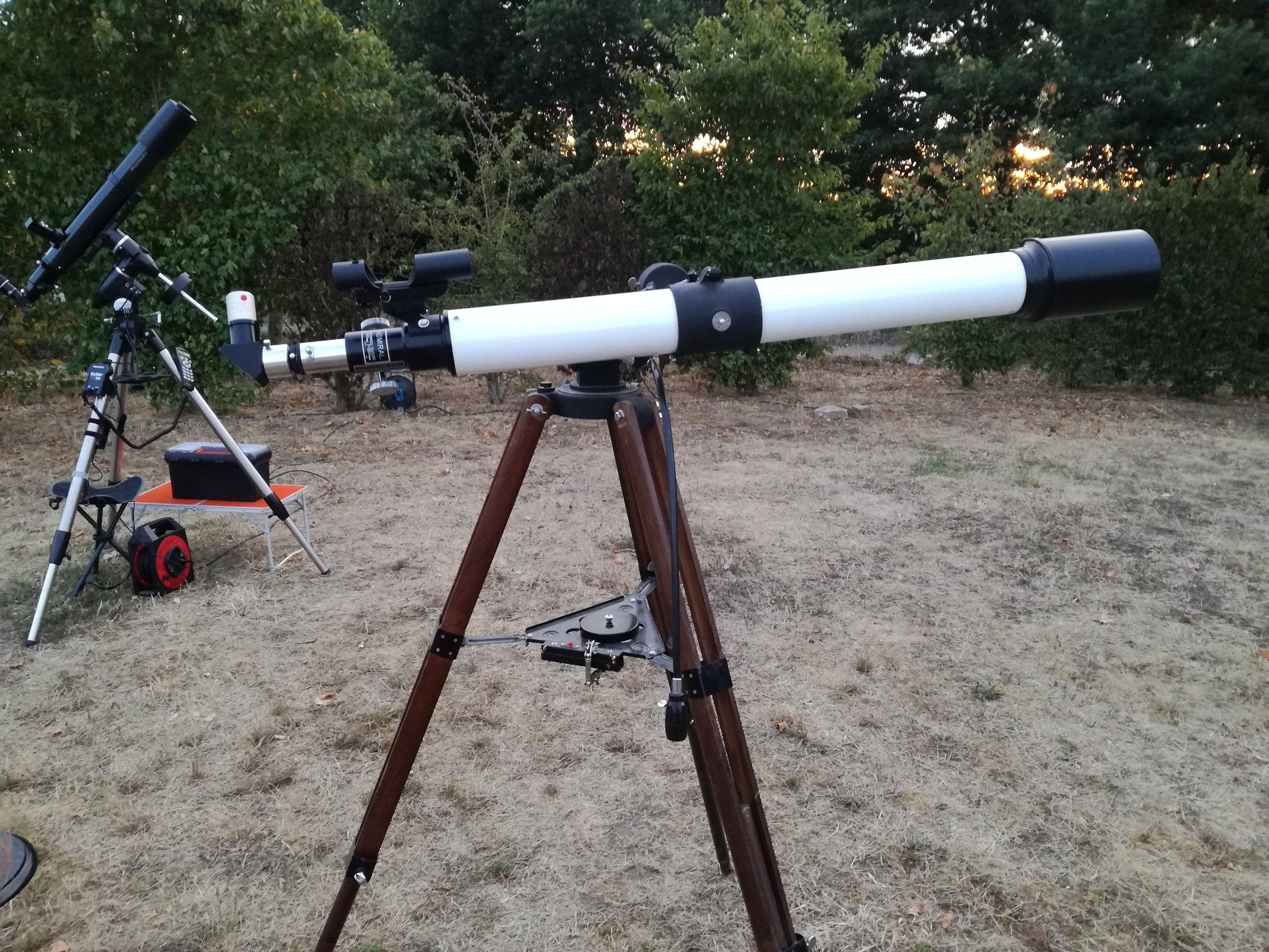 Astro_007 Posté 6 août 2019 Posté 6 août 2019 Participant à une animation Nuit des Etoiles dimanche soir, j'ai croisé une vieille dame des années 70, une Lunette achromatique Admiral, son propriétaire est un débutant et j'en ai profité après l'avoir aidé pour jeter un oeil dedans avec mon oculaire vintage Zeiss 0-10mm (X120) sur Saturne. Elle se défend très bien la vieille dame !!! c'est bluffant la qualité de l'image (F/D 15 ça marche bien!)... Les Japonais savaient déjà faire de belles et bonnes Lunettes!