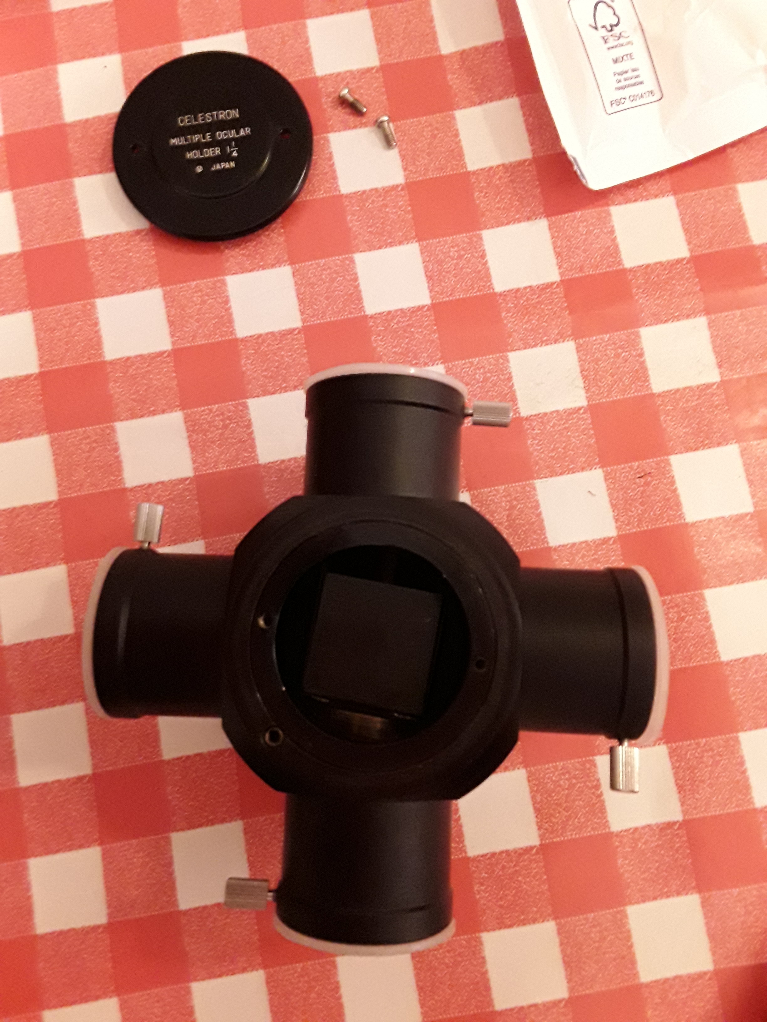 Il ne s'agit pas du porte-oculaire qui est cassé, mais de la tourelle comme tu le signales. Cet article n'existe plus aujourd'hui chez Celestron, trop ancien, années 80. Déjà, tu peux te renseigner chez l'importateur (Médas Vichy) pour voir s'ils ne peuvent rien faire. Pour le reste, il suffit d'acheter une bague porte-oculaire coulant 31,75 ou 50,8 mm selon ce que tu veux monter comme accessoires derrière. Tu trouveras tous ces modèles dans n'importe quel magasin astro.