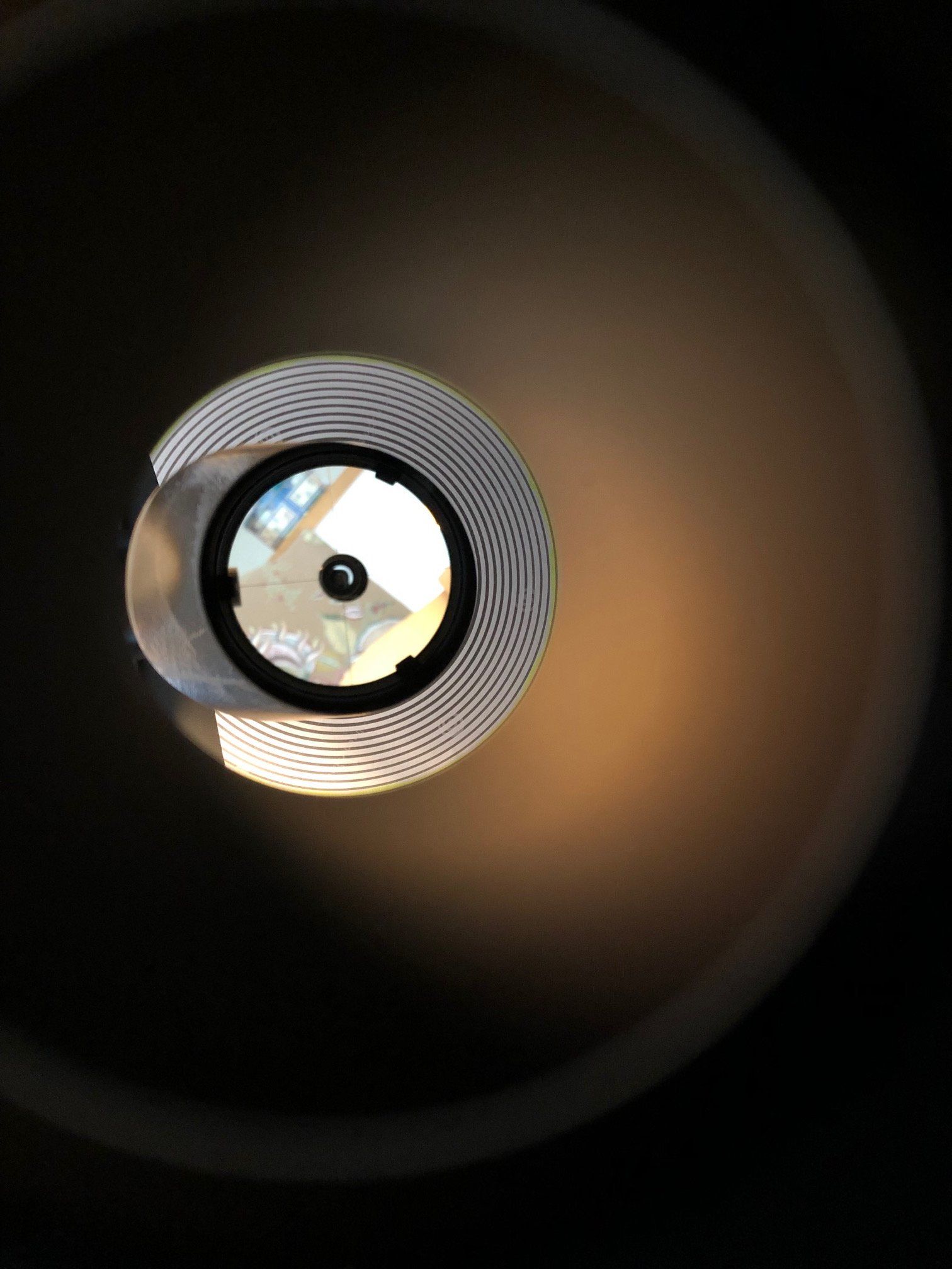 J'ai pris 2 photos pour illustrer // ATTENTION: photos prises à la main et en enlevant l'oeilleton, je n'étais pas pile dans l'axe et ne correspondent pas exactement a ce que je voyais dans l'oeilleton, ça permet juste de bien illustrer le principe et l'aide apportée par cette feuille de cercle concentrique