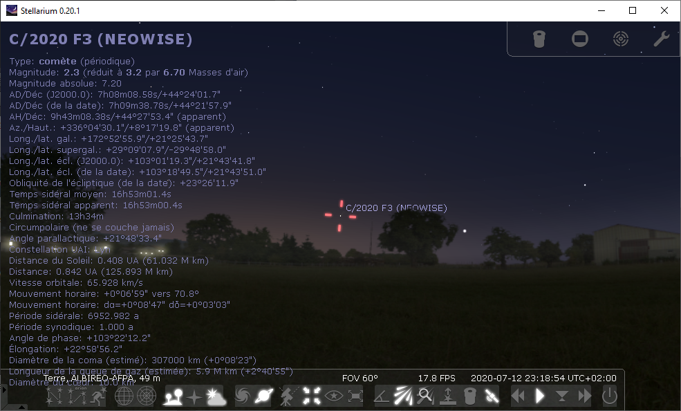 Pour ajouter la comète tu peux essayer de faire les actions suivantes :