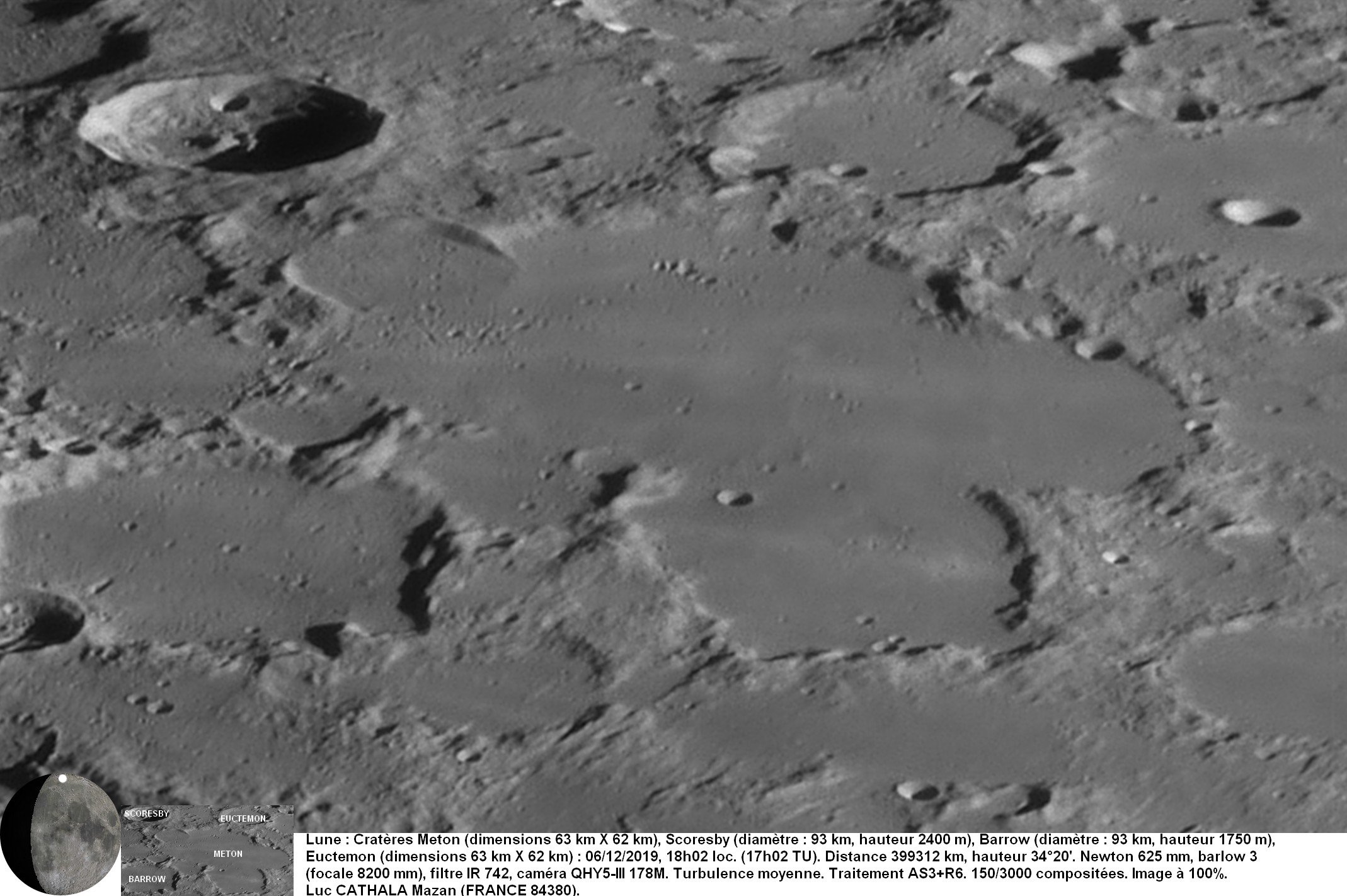 Lune : quelques cratères du nord au 625 mm et QHY5 III 178M le 06/12/2019