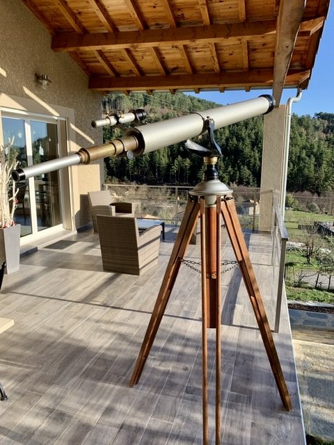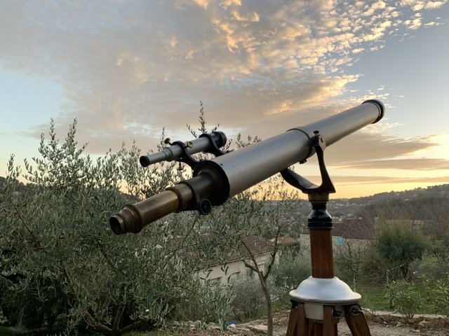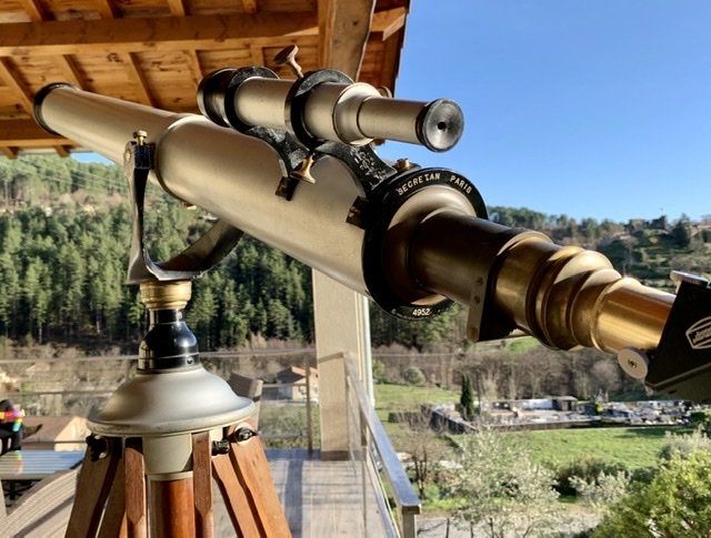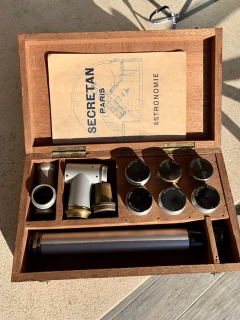 AstroSylv1 Posté 22 décembre 2019 Posté 22 décembre 2019 Hello, Pour le plaisir des yeux, quelques photos d’une Secretan 110mm, 1650 de focale, qui a été récupérée et nettoyée aussi sobrement que la Manent 95 sur un autre post : uniquement eau tiède et microfibre, juste pour dégraisser et dépoussiérer. Lunette des années 50 environ, tube en alu, mécanique en laiton, très beau coffret d’accessoires, bref, opérationnelle et sublime... mais énorme !! C’est grand ces vieilles lulu ! En février je la ramène en Lorraine où elle va rejoindre un club astro voisin du mien 🙂 6 4