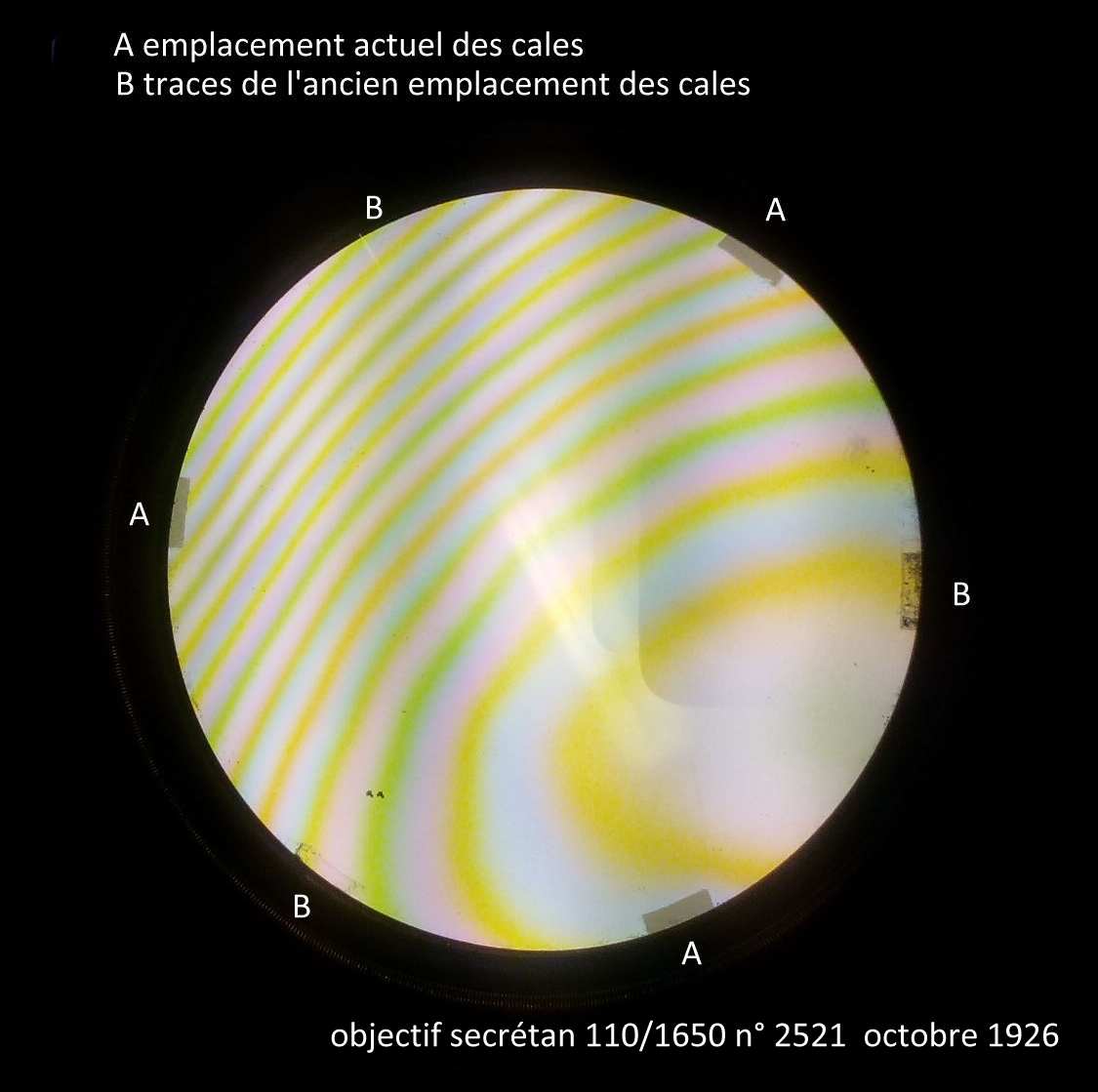 tournevase Posté 19 mars 2021 Posté 19 mars 2021 13 hours ago, lyl said: Les rayons internes sont très proches offrant peu d'anneaux de newton au test. oui et c'est extrèmement sensible même à la moindre pression j'ai obtenu ça au mieux à la lampe au néon mais à mon avis c'est que les verres sont quasi parfaitement alignés avant y'avait ça et sans cales parce que A c'était de la colle de cales disparues 13 hours ago, lyl said: fabriquée Epry en 1926 sur le barillet il y a "j-g secrétan paris 2521 X 26" bosgi a un tuyau "La maison Sécrétan a été fondée en 1845 par Marc Sécrétan et a été transmise à ses deux enfants qui l'exploitent jusqu'en 1911. Ils la cèdent à Charles Epry qui s'associe en 1913 à un certain Gustave Jacquelin (1879-1939). Cela collerait assez avec les initiales J-G et avec la date de 1926. " 1 1