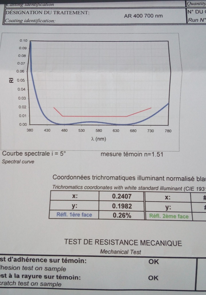 lyl Posté 21 mars 2021 Posté 21 mars 2021 (modifié) Ah ça. Oui, il y a d'autres moyens, on peut faire un traitement à basse température : MgF2~130° chez MCM Optique, je leur avais posé la question. On avait même testé plus haut en BBAR, sur un crown des années 1970. A ne pas faire sur un doublet collé silicone par contre, je m'en souviens encore... Sur un verre nu la formule est simple, par contre c'est plus complexe quand on empile les couches. cf https://fr.wikipedia.org/wiki/Traitement_antireflet Théorie sur du BK7 en incidence normale : 1.2% et en pratique ce serait plutôt 1.75% sur la plage visible (ex. : https://www.edmundoptics.fr/knowledge-center/application-notes/lasers/anti-reflection-coatings/) Les traitements Mgf2 ont été testé jusqu'à 200°C d'après ce que j'ai trouvé. La température est la plus élevée pour les traitements "dur" améliore la cohésion, l'homogénéité et la résistance à l'arrachement du traitement. Pour le fluorure de Magnésium, l'indice effectif et reproductible est de ~1.375 à 550nm et c'est intéressant sur les verres flints. ajp-jphys_1964_25_1-2_60_0.pdf Modifié 21 mars 2021 par lyl