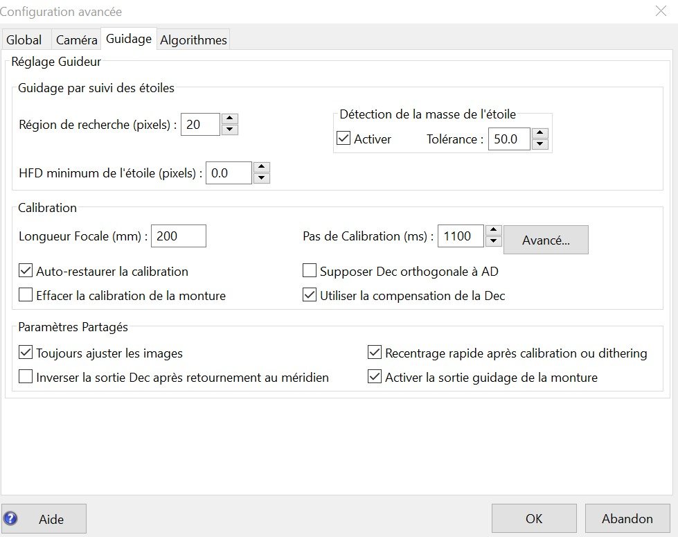 (la monture réagit bien, et je guide avec le port ST4), et j'ai calculé le pas de calibration, il me donne 1100 ms, j'ai changé cette valeur à plusieurs reprises, pour voir.