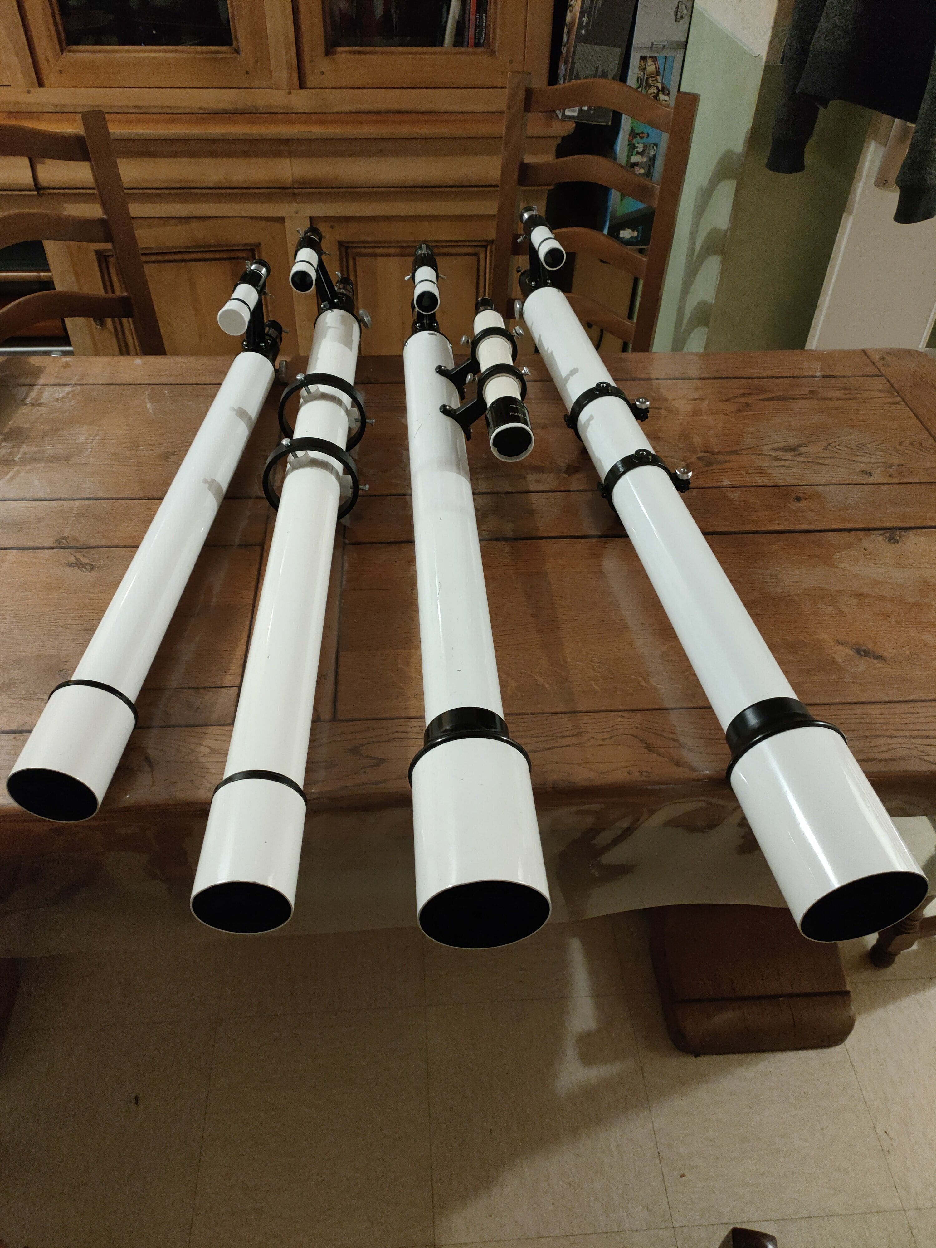 Jorris Posté 22 octobre 2021 Posté 22 octobre 2021 Le 19/10/2021 à 19:45, staffy a dit : Il s'agit en effet d'une Royal Astro ... et tu dispose d'un excellent moyen pour l'authentifier Une photo de famille De gauche à droite Perl Royal 60 900 Royal Tokyo 60 1200 Perl Royal 76 1200 tube court, ma première. Ets cerf 76 1200 tube long qui est une Royal également. Tous, d'excellent réfracteur 🙂 6