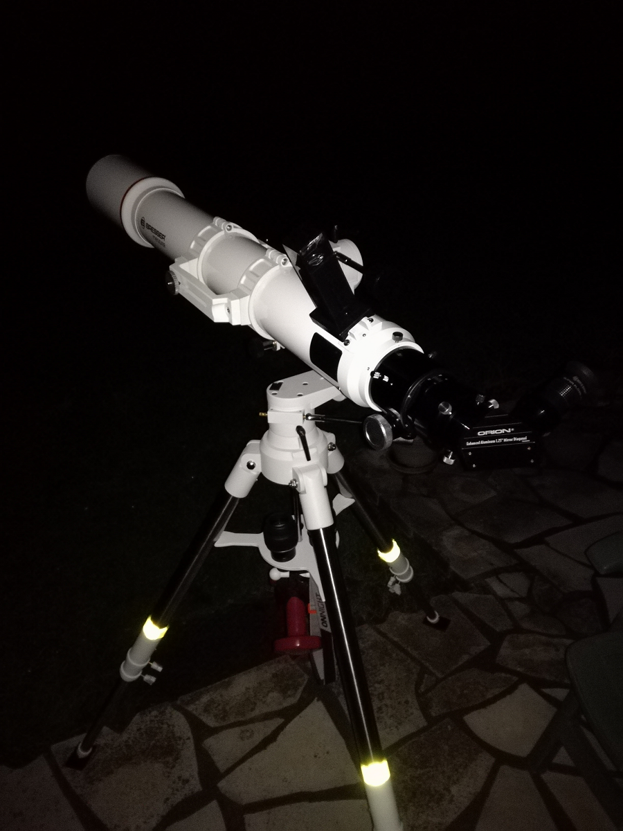 Effectivement c'est la 80 ED, là j'essaye la Bresser AR-102/1000 sur la Twilight I ES, d'ailleurs ES USA vend la même Lunette sous sa propre marque avec un pointeur point rouge (à la place de l'indigeste 6X30 et son support plastique) de ce que j'ai pu voir.