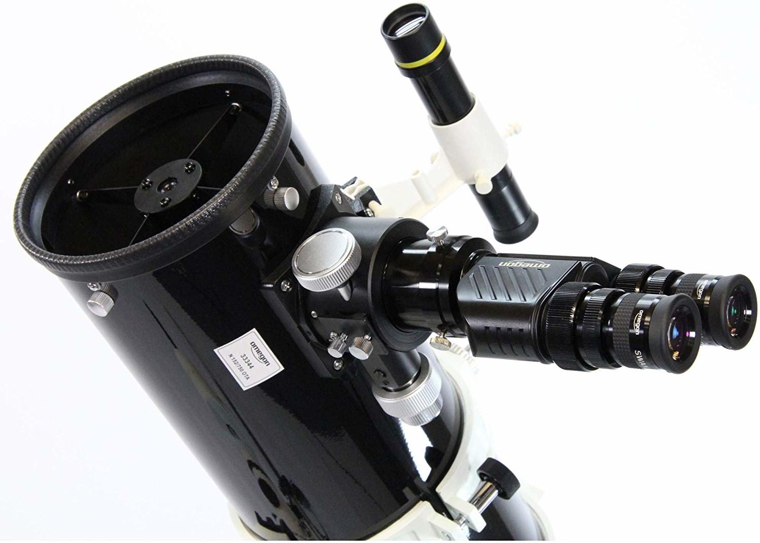 Attention ce télescope reste une entrée de gamme, donc avec une monture relativement légère qui ne supportera pas les coups de ton arcade sourcilière, les forts grossissements, le vent... et le poids d'une bino avec ses 2 oculaires derrière. Tout ceci est d'ailleurs parfois aussi mal supporté par des télescopes beaucoup, beaucoup plus gros...