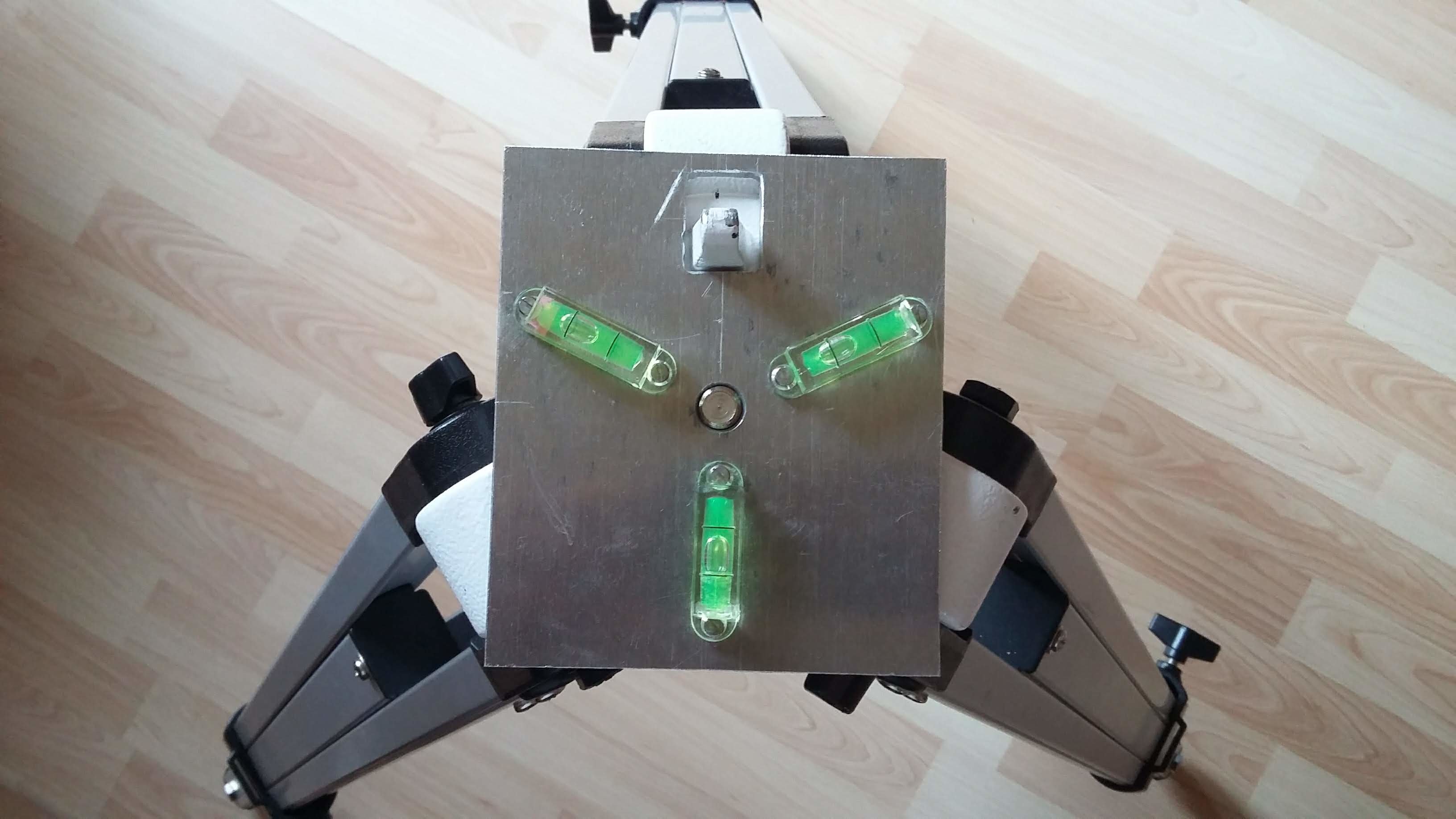 Batbihirulau Posté 12 mars 2020 Posté 12 mars 2020 Et si vous ne faites pas confiance à la bulle intégrée dans beaucoup de trépieds (ce qui est parfois légitime...), voici 2 petites bidouilles: Le but est de disposer 3 niveau à 120°, dans l'axe de chaque pied comme l'a dit Fred_76. Version compatible EQ3 et EQ5 (c'est juste une plaque alu posée et brièvement vissée sur le trépied) Version compatible HEQ5: (plaque alu fixée à demeure sous le trépied) 1