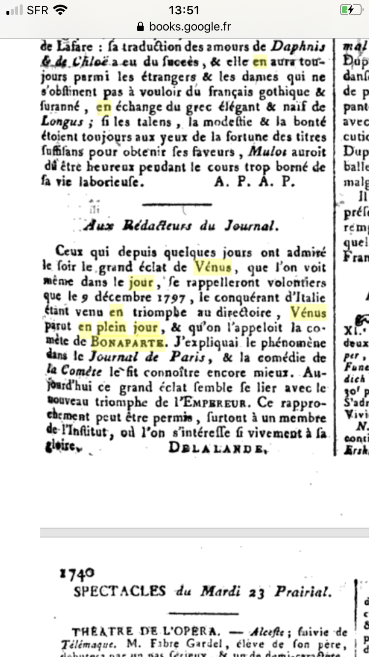 C'est marrant que tu en parles parce que justement j'ai trouvé un truc il y a quelques semaines sur la comète "Napoléon" :beer: