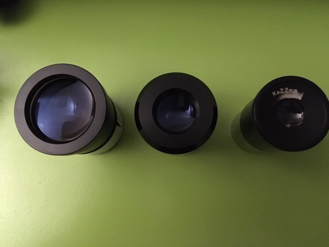 archange34 Posté 14 avril 2020 Auteur Posté 14 avril 2020 (modifié) Un petit test sur les oculaires à "grande" focale , un kellner 22 japan (livré avec l admiral 80), le 25 kellner de chez Scopetech et un oculaire 10/22 de microscopie made in china en jupe 30 pour laquelle il suffit d'un petit coup de ruban d un millimètre pour l adapter. Test sur étoile, notamment Acturus. Les 1,25 passant avec l adaptateur en photo ci dessous (il en existe avec serrage annulaire, c'est préférable au mien) Et bien franchement cela a été difficile à départager....Le Kellner 25 et 22 donnent peut être des étoiles plus ponctuelles, mais il m'a fallu des très longues minutes pour en arriver à cette conclusion et je n'en suis pas certain. Par contre ce qui est sur, c'est que l'oculaire de microscope donne un très grand champ, facilement 10 degrés de plus, peut être plus. Les étoiles sont aussi très belles, je n'ai pas noté de différence de couleurs pourtant j'ai beaucoup jongler avec pour en trouver, peut être un ciel un poil plus sombre mais là aussi c'est vraiment très difficile à dire. En bord de champ il y a des distorsions dans les trois oculaires sans que cela soit non plus trop mauvais, pas pire qu un hyperion... Mais le confort de l oculaire de microscopie avec son "hublot" est vraiment sympa dès qu'on arrive à bien placer son oeil. Aucune ombre volante dans les 3 oculaires. C'est vraiment à essayer, on en trouve sur le net (mais prenez un grand champ genre 10/22 ou 23 si vous trouvez et pas 10/18 plus courant) Il faudra que je refasse des essais sur la Lune pour vérifier. Ma collim est bonne (voir très bonne et sans aucun instrument j'ai du avoir du bol...bien que j'y ai passé une bonne heure) Quoiqu il en soit ce JPM est vraiment un super petit instrument. Modifié 14 avril 2020 par archange34 1