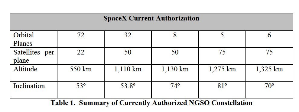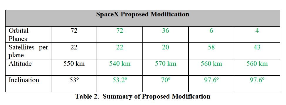 SpaceX veut redescendre 2824 satellites prochainement lancés d'une altitude de 1100/1330 km à 540/570 km. Motif : en fin de vie ils disparaîtront plus rapidement dans l'atmosphère et ils seront moins nombreux à être visibles en un point donné pour un observateur...