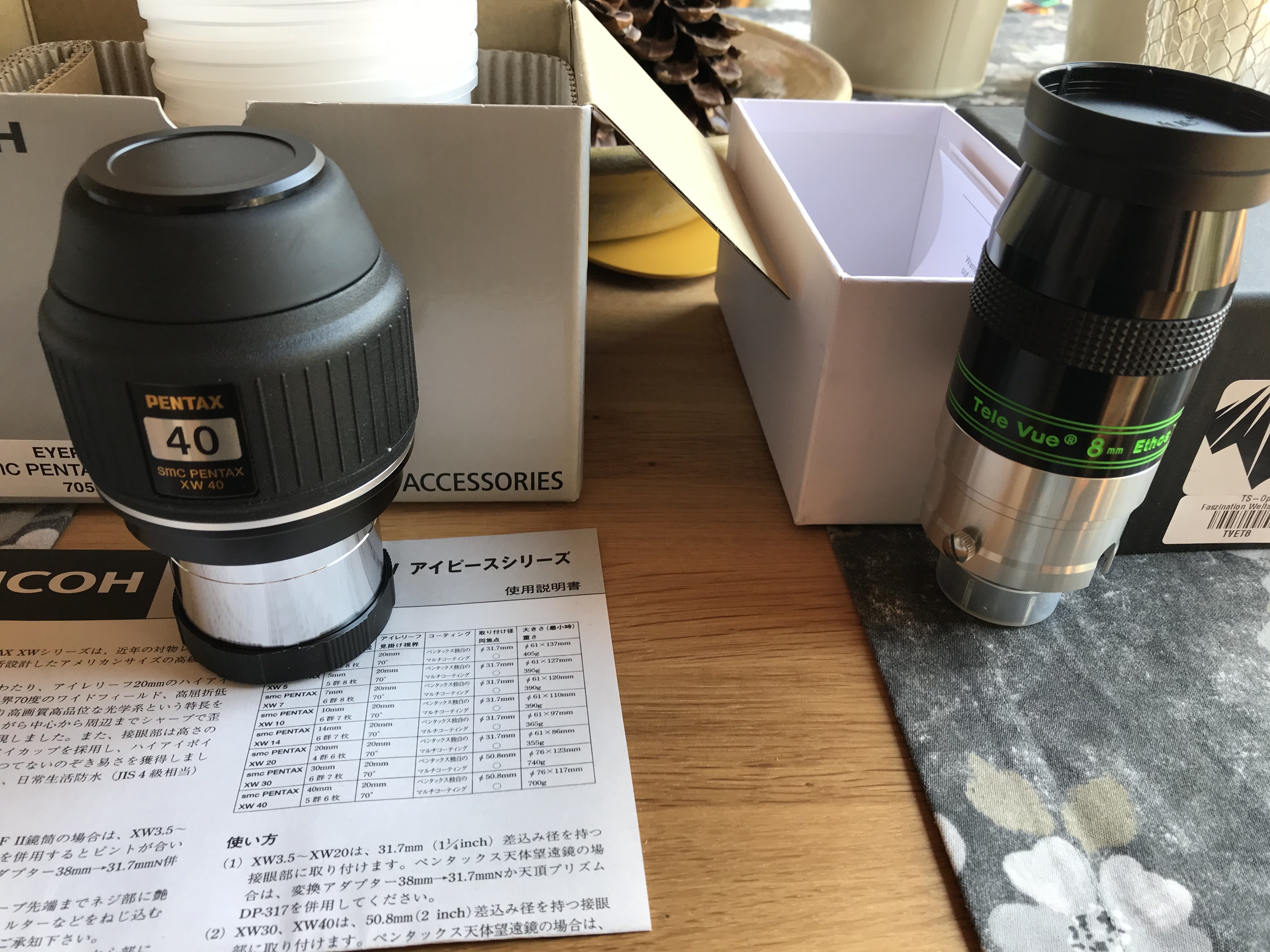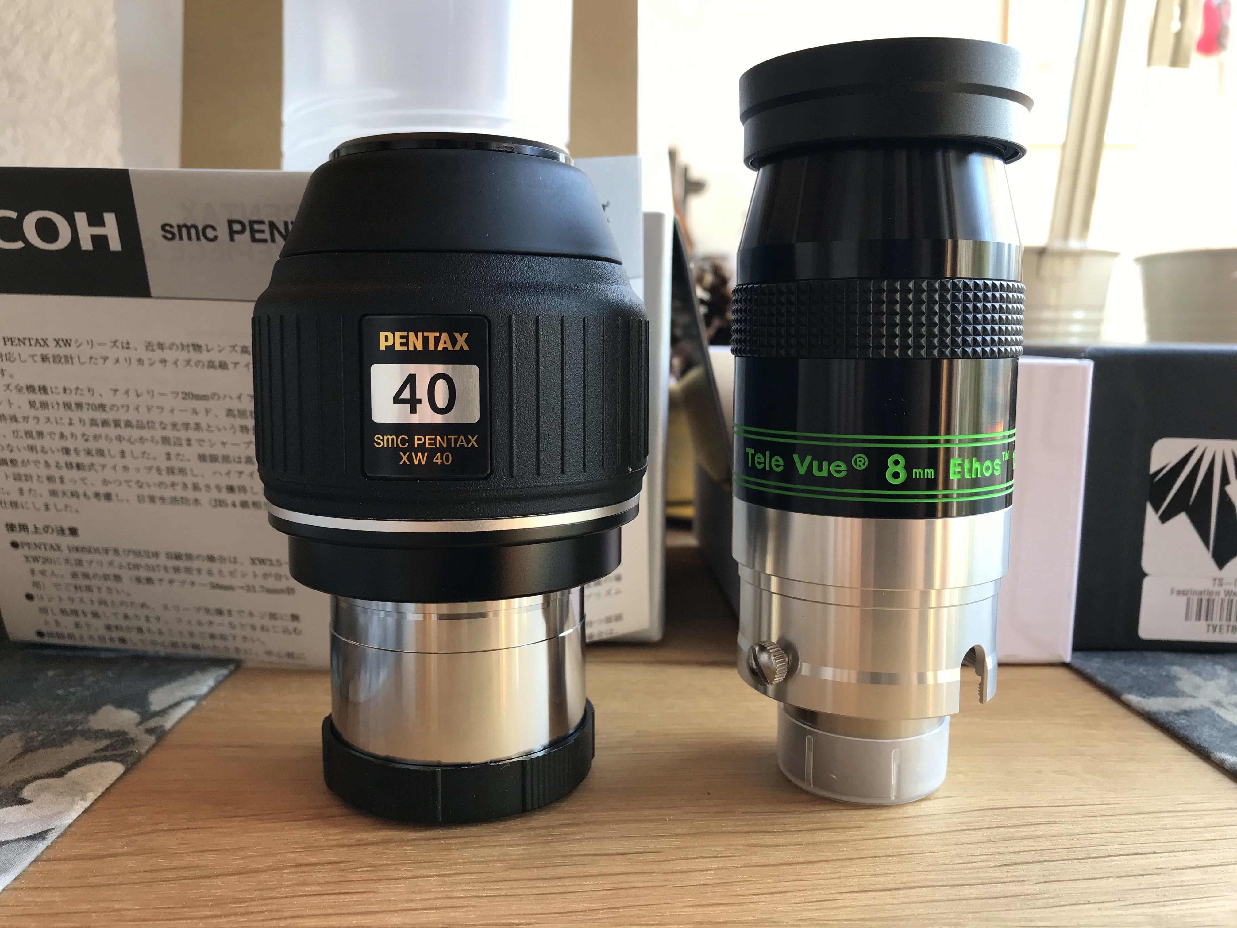 Pour compléter, je vais acquérir un Pentax XW de 40 mm. Il fournira une pupille de sortie de 5.3 mm avec la TSA 120. Ce sera parfait pour ma vue de quinquagénaire.