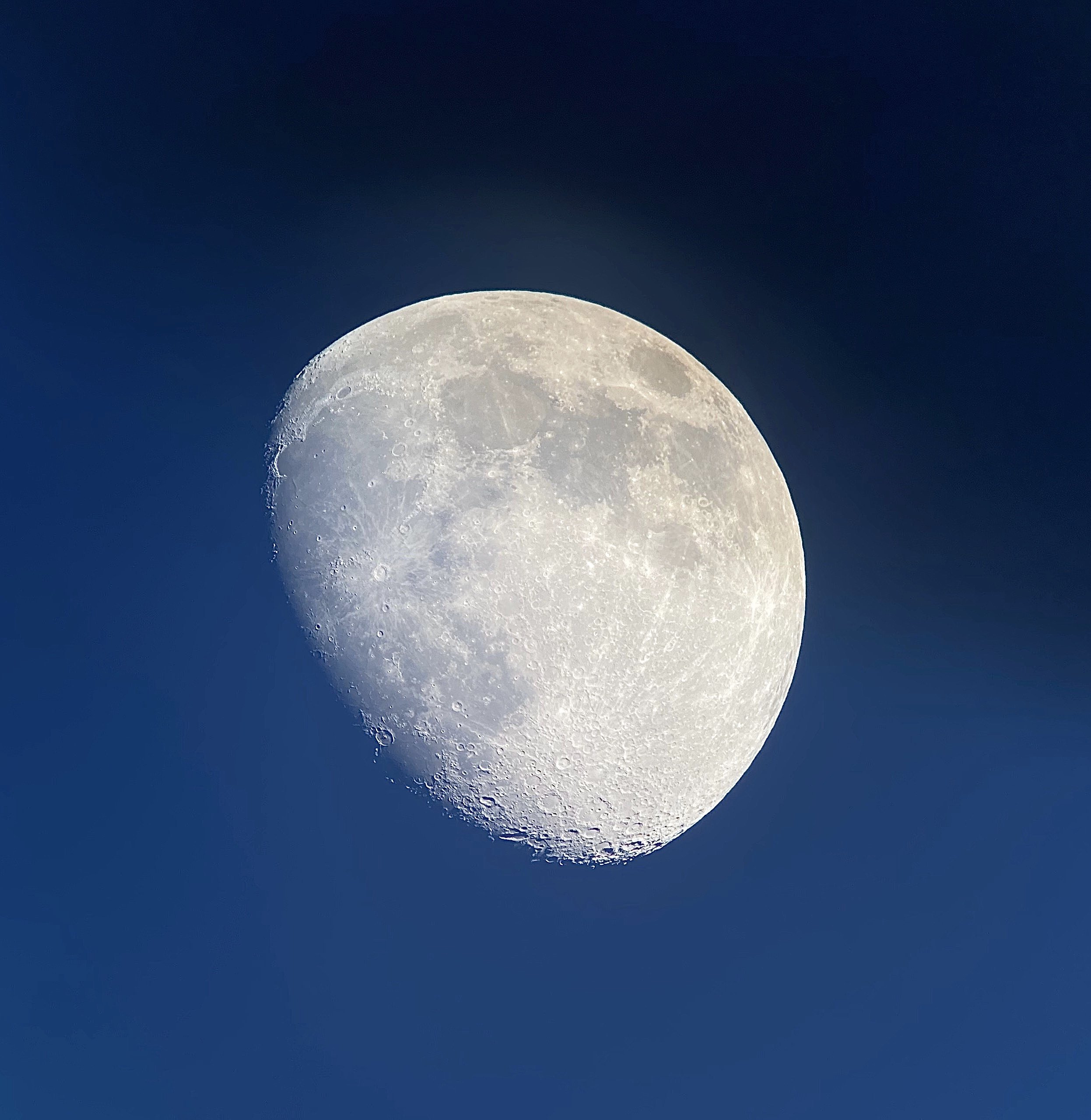 Quand au bleu il n'est uniforme sur la photo peut être un reflet opposé à la lune capté par le téléphone non !