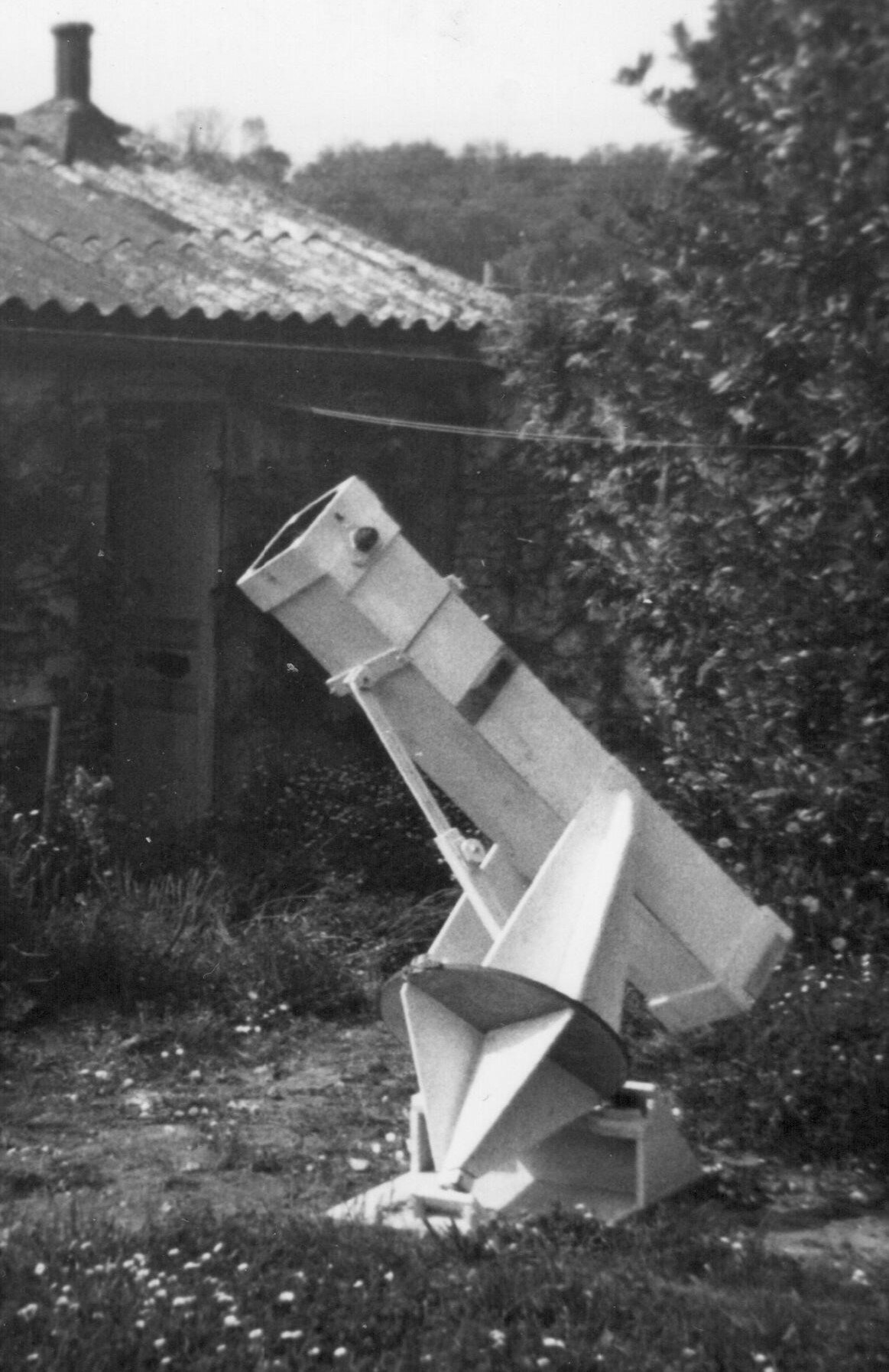 Ygogo Posté 17 mai 2020 Auteur Posté 17 mai 2020 (modifié) Bonsoir à tous, et merci pour vos sympathiques réactions mais allez-vous supporter que le vieux hibou continue à radoter étaler ses souvenirs ? Pendant les années du collège, j'ai continué à m'intéresser à l'astro, encouragé par mon père qui était membre de la SAF. J'ai fabriqué une "lunette de Galilée" en carton, expérience intéressante en soi, mais donnant sur le ciel des résultats décevants par rapport à la "lunette du grand-père" montrée ci-dessus. Et puis mon père a acheté d'occasion un objectif achromatique de 80 mm, focale 1200 mm. Il a construit une lunette avec des tubes de carton de récupération, sur monture alt-azimutale en contreplaqué… Un grand saut technologique et des images lunaires et planétaires tout à fait correctes Je ne parle pas du ciel profond, même dans les années 60 ce n'était déjà pas l'idéal depuis le balcon en plein Paris. Vers 16 ans, j'ai eu la chance de pouvoir observer avec les lunettes de la SAF, installées à l'époque dans des coupoles situées en plein quartier latin, rue Serpente. (cet observatoire n'existe plus, la SAF utilise maintenant la coupole de la Sorbonne). Et à 17 ans j'ai entrepris la construction d'un télescope de 200 mm, focale 1600 mm, en suivant scrupuleusement le livre de Texereau… Le projet était de l'installer chez mes grands parents, dans un hameau du Vexin sans éclairage public. Mais d'abord, ébauchage, doucissage, polissage… et plus de temps passé sur ce miroir que sur le travail scolaire Résultat de l'année : miroir avec beaucoup de "gris", notes minables, même pas admis à l'oral de rattrapage du Bac. L'année suivante, en même temps qu'une Terminale un peu plus sérieuse, j'ai pu intégrer le "groupe du samedi" de la SAF. Sous la houlette de pousseurs de verre chevronnés, et d'un membre du laboratoire d'optique de l'observatoire de Paris, j'ai terminé le polissage et la parabolisation. La construction du télescope a été achevée aux vacances suivantes, avec le tube "standard" du livre de Texereau, et installation à la campagne comme prévu. La monture équatoriale à fourche (entièrement en contreplaqué) que j'avais imaginée était assez originale… et un peu trop flexible, compte tenu du poids du tube. Mais la mise en place était facile et l'observation visuelle confortable, c'était tout ce que je demandais à l'époque. On voit sur la photo le plateau circulaire qui servait de palier Nord. Le plateau était cerclé avec un ruban d'acier pour que la tranche, qui reposait sur deux roulements à billes, ne se déforme pas. (la photo a été prise devant le local où l'engin était entreposé, pour observer je le transportais (en deux fois) avec une brouette dans le champ d'à côté ) Une belle aventure, et un instrument de bonne qualité optique et mécanique selon les standards de l'époque. Il a rendu de bons et loyaux services pendant trente ans ! A suivre... Modifié 17 mai 2020 par Ygogo 1 3
