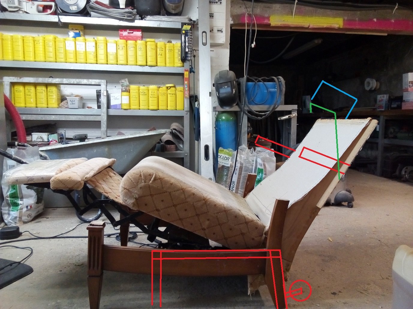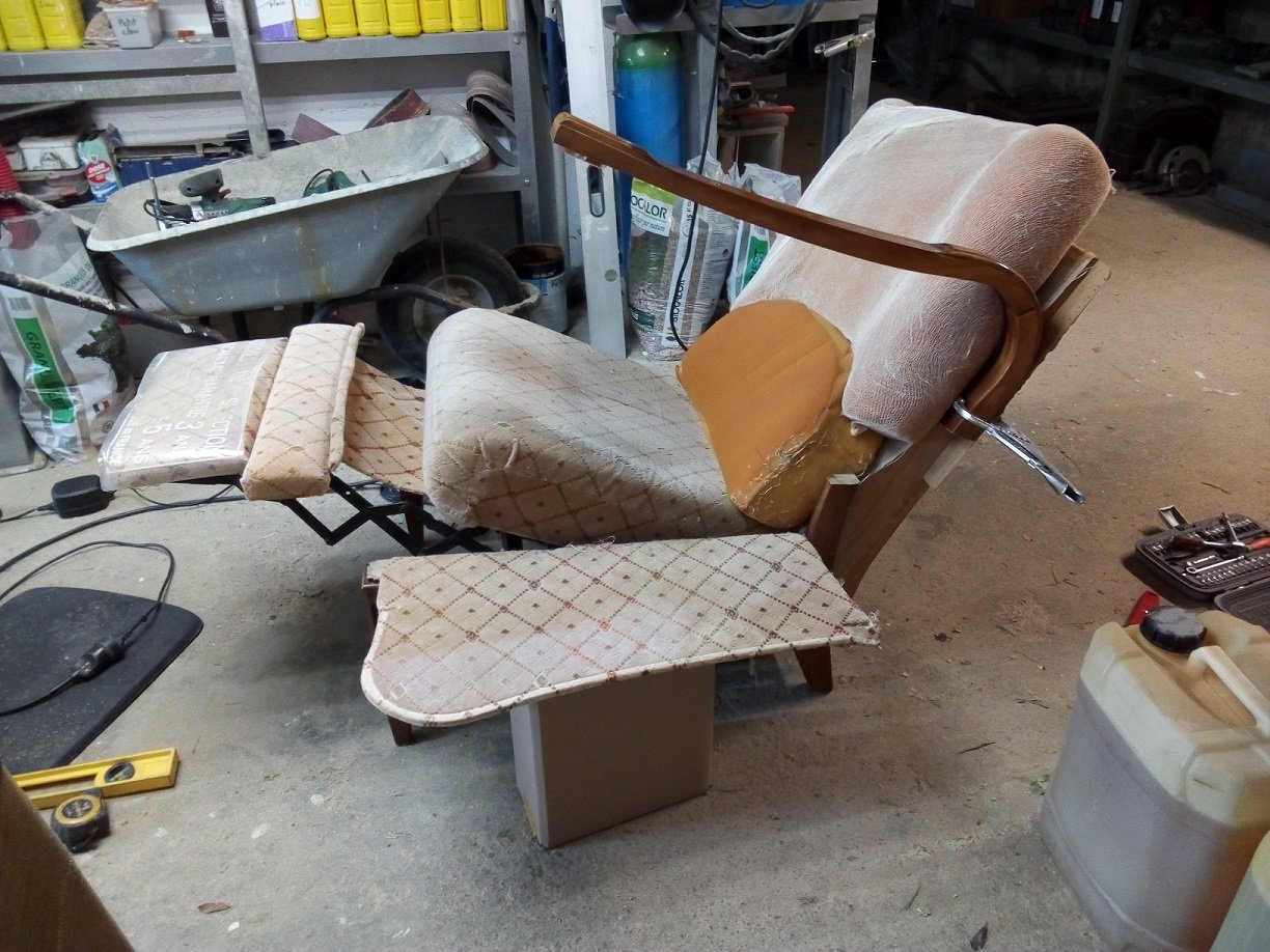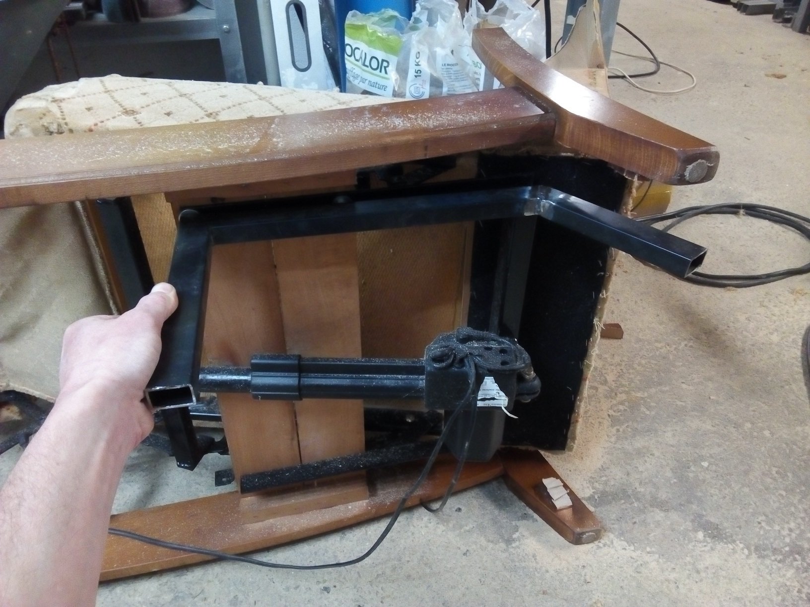 Pour les pieds je vais devoir les conserver car le vérin électrique sous le fauteuil à besoin d'un dégagement d'environ 100mm sous le châssis pour fonctionner.