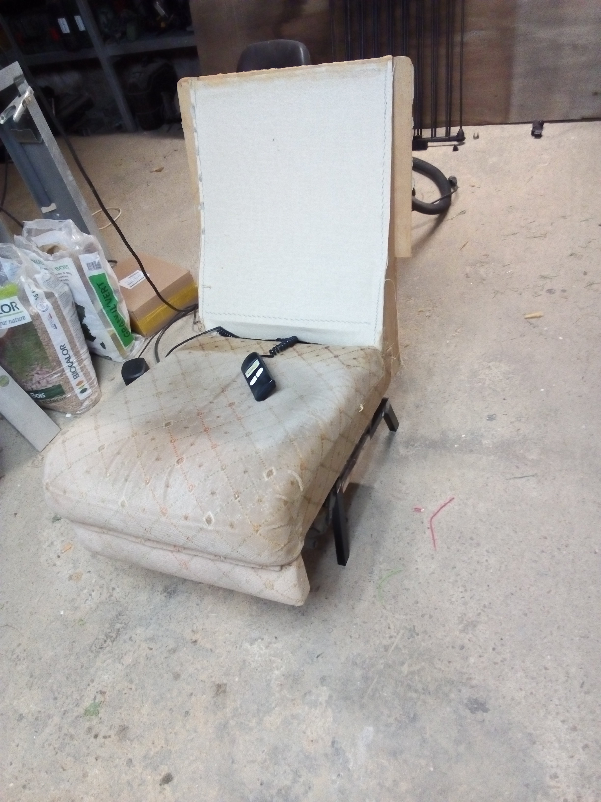 Comme à mon habitude un matin je consulte mes recherches enregistrées et je tombe sur une annonce pour deux fauteuil électrique à donner! Avec ça je me dit qu'il y aurait surement matière à récupérer pour un projet futur! Me voila parti chercher ça et après une semaine resté dans l'auto les voici dans mon garage, super propre, une aubaine!