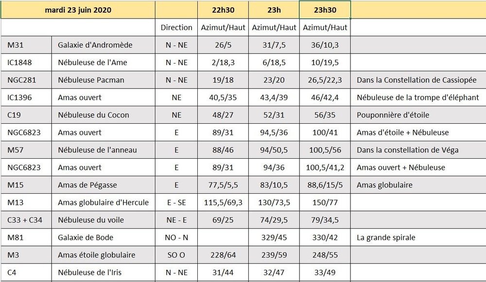 Attention quand tu regardes la magnitude d'un objet (plus elle est élevée, moins l'objet est lumineux) à faire également attention également à sa taille. Plus un objet est grand et étalé, plus c'est difficile de le repérer car sa luminosité s'étend sur toute sa surface.