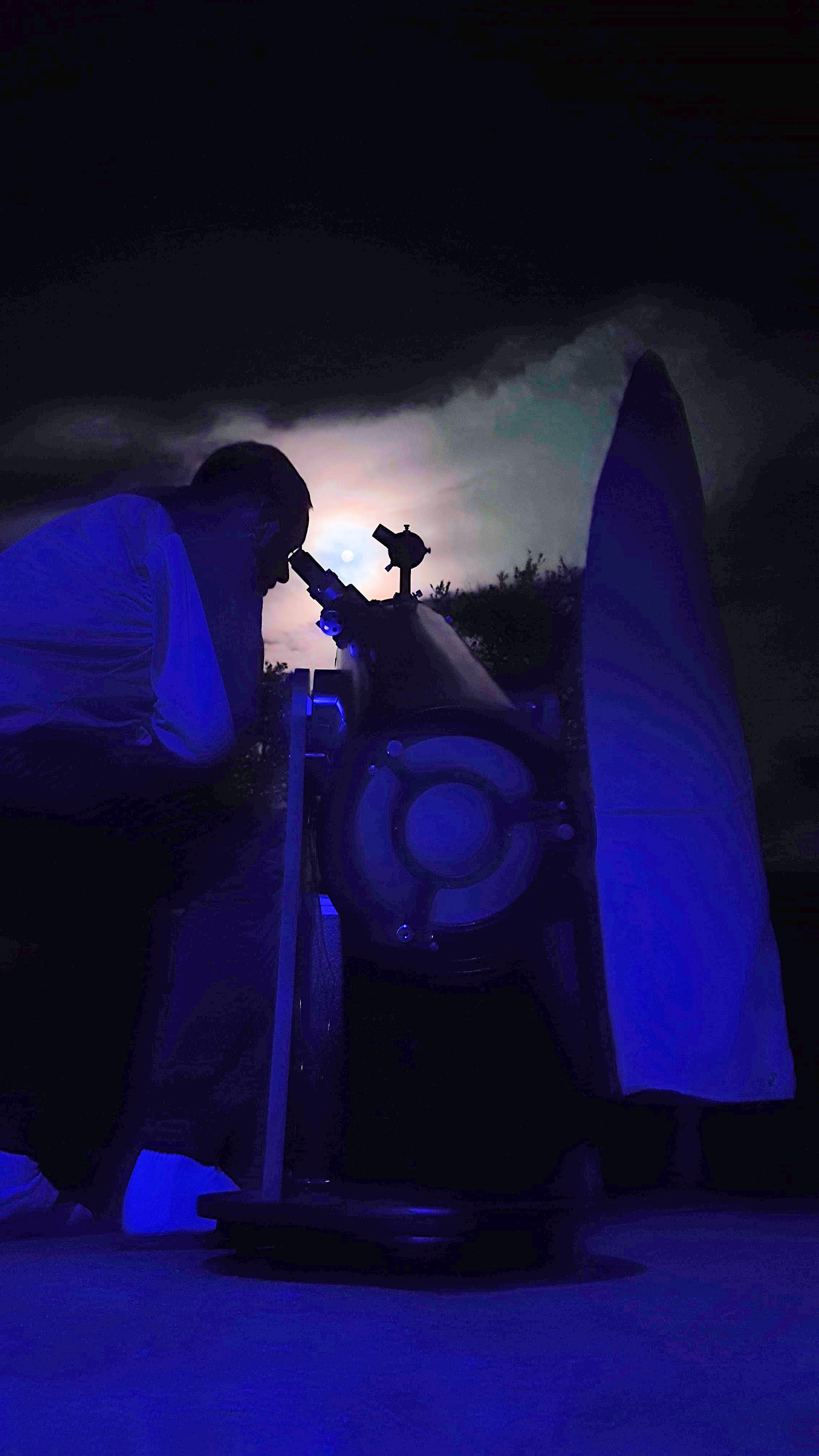 Une petite photo surexposée ou je suis assis sur une chaise pliante, même le télescope au zénith je peux rester assis :