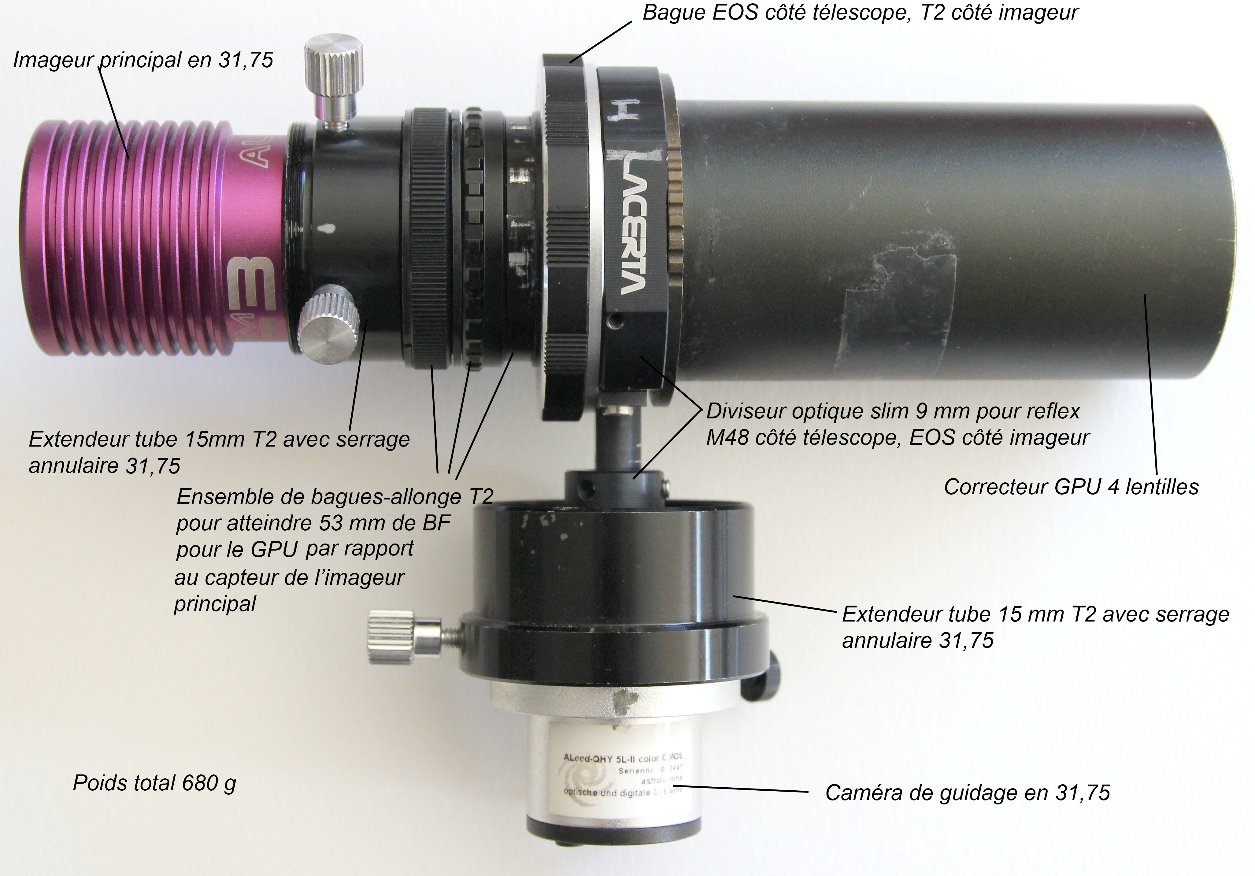Montage pour poses courtes avec diviseur optique.