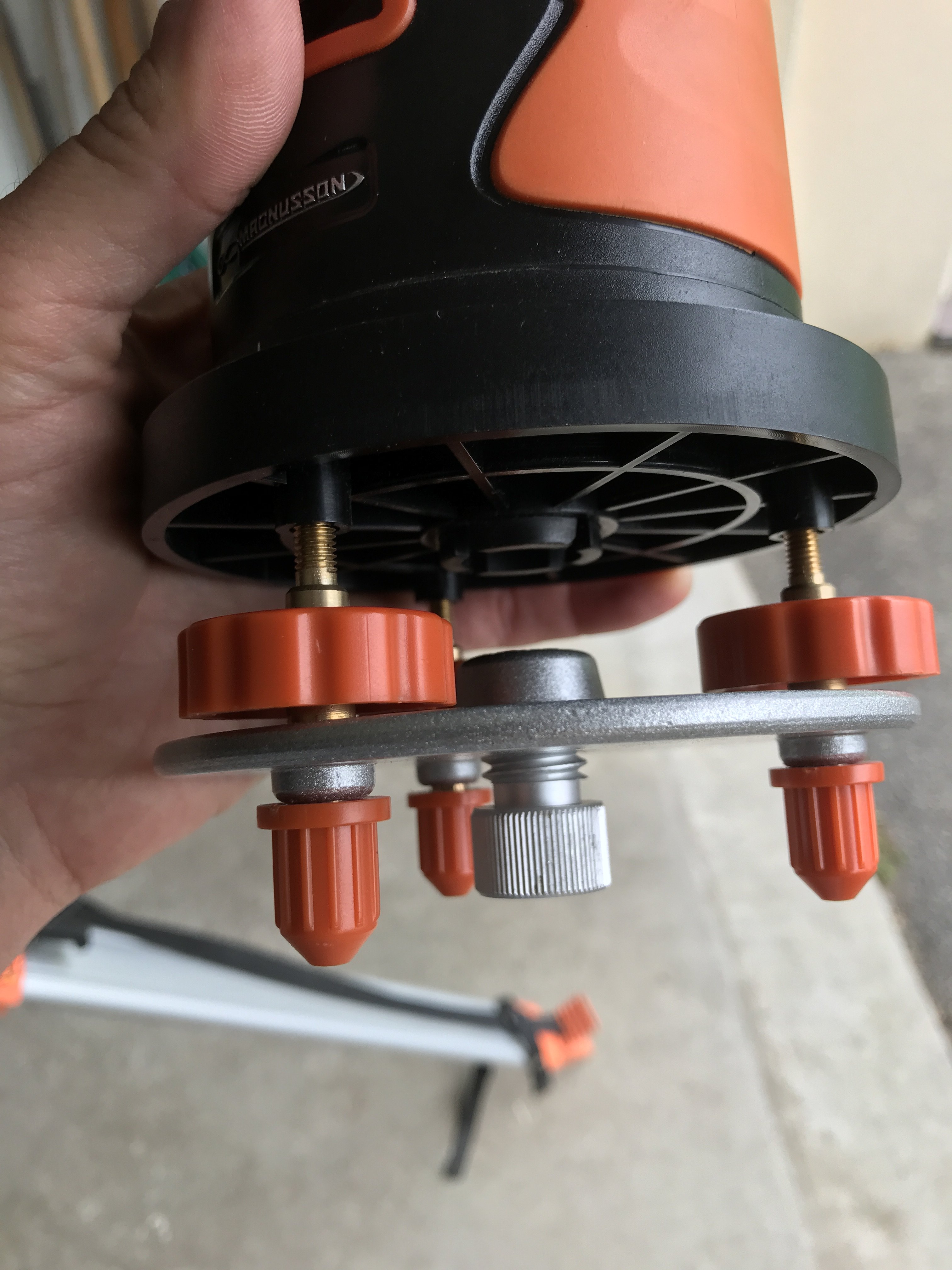 Par contre, en regardant de plus près le laser fourni avec mon trépied, j'ai fait une belle découverte... qui résout tous mes problèmes de vis !