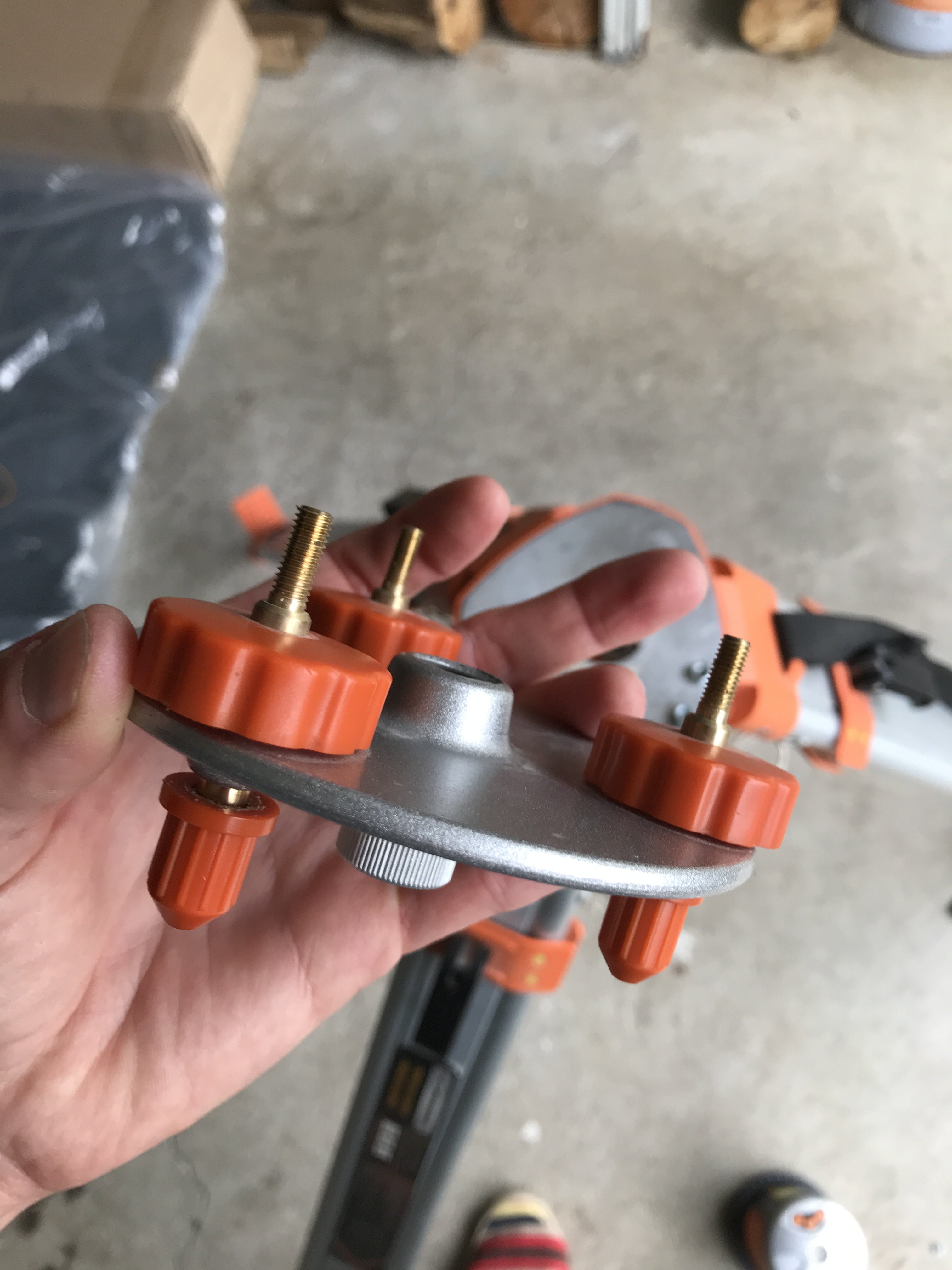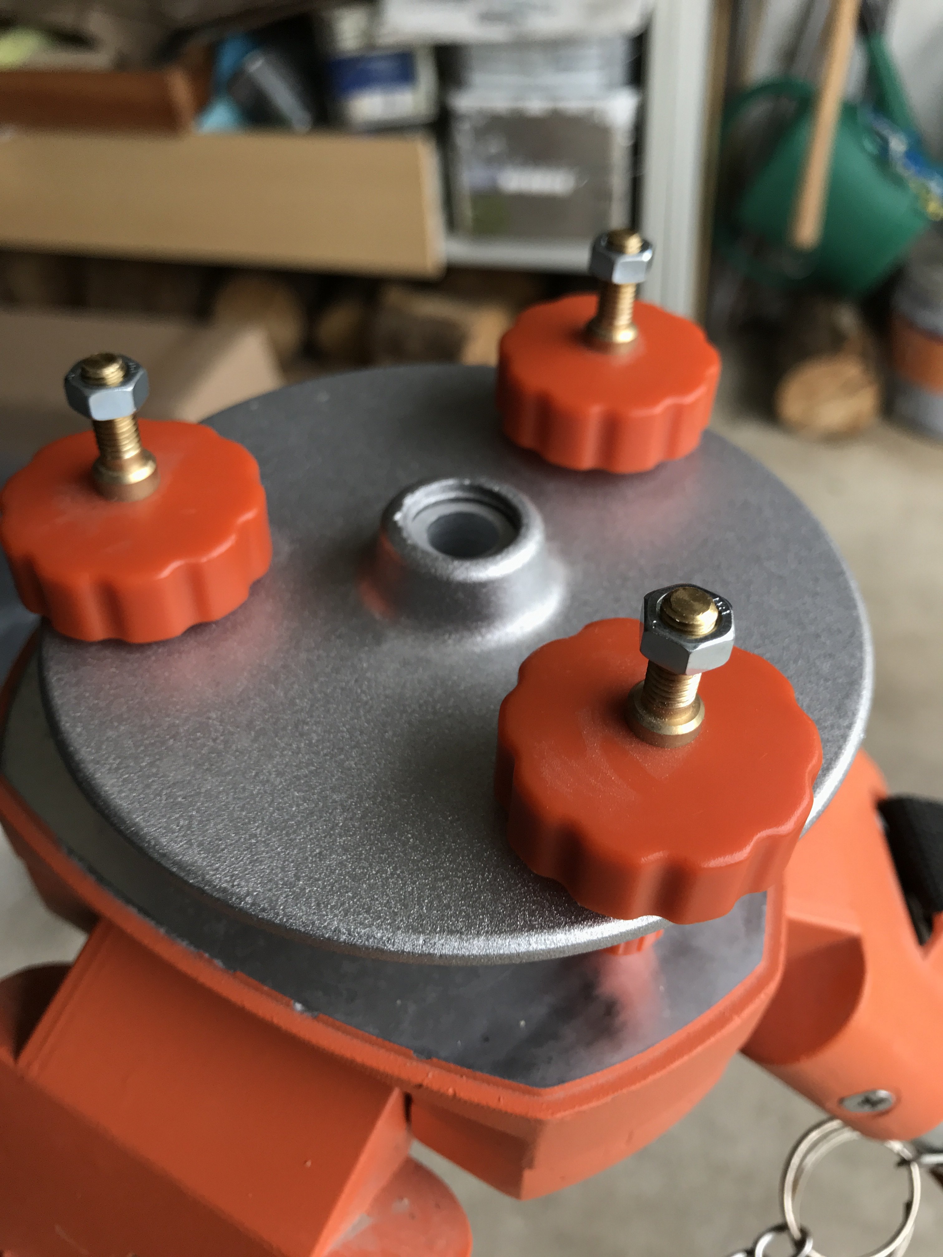 => je pourrai y visser les 3 vis de la plate-forme, et en vissant plus ou moins régler finement la planitude de l'ensemble.