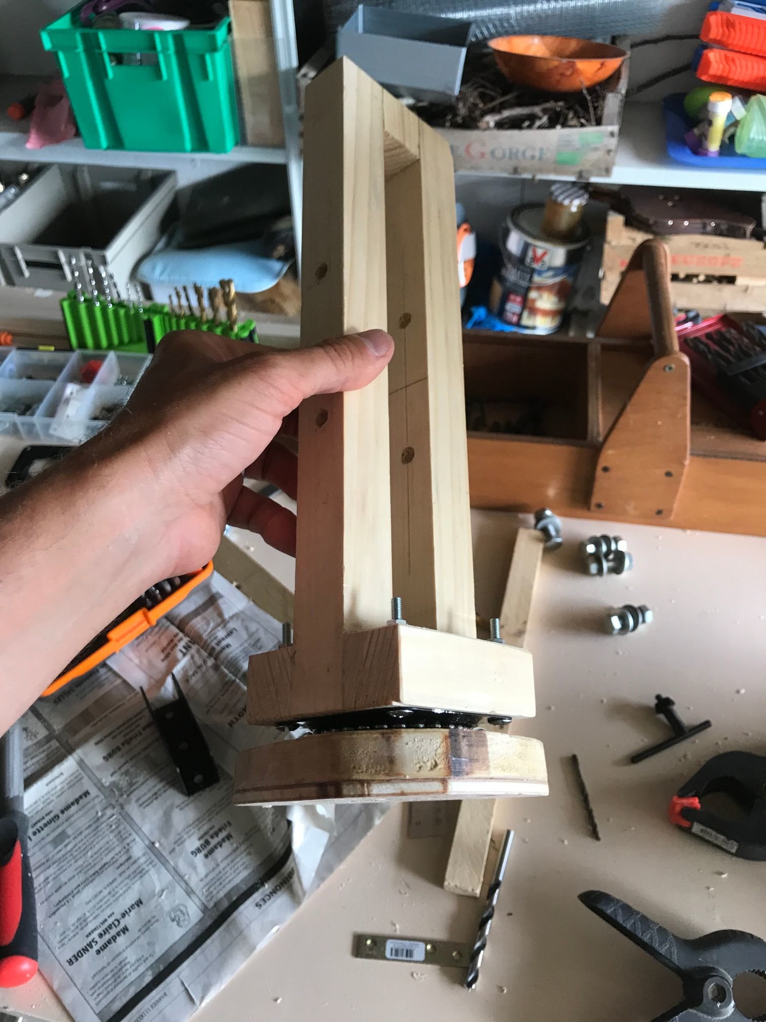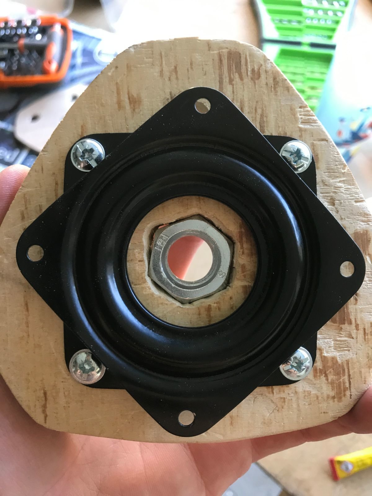 puis visser l'autre partie "haute" du lazy susan sur une autre plaque en bois (moins épaisse je pense)