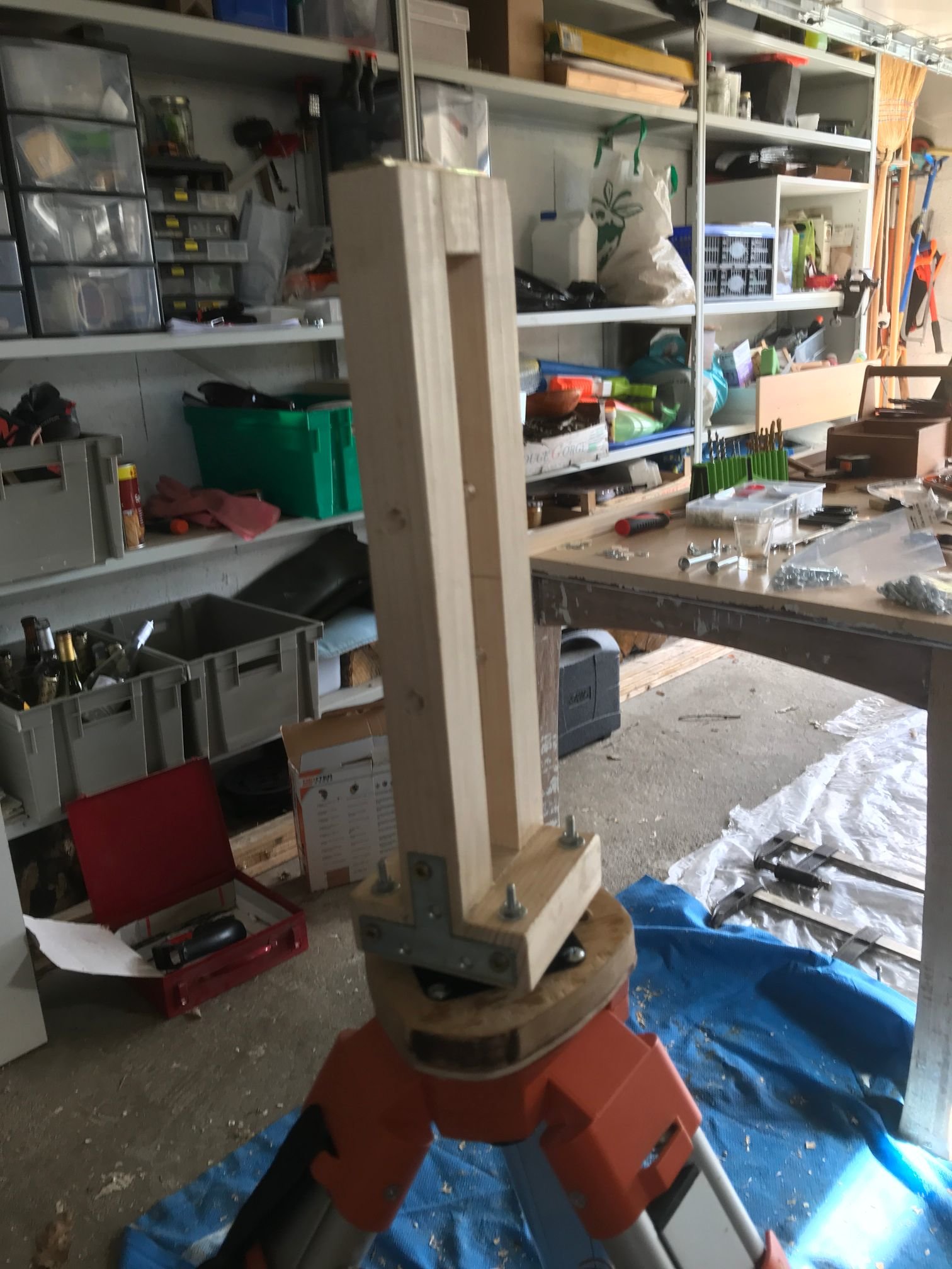 Après les premiers tests dans le jardin, j'ai vu l'importance que la base soit bien à plat, sinon ça tournait tout seul ou bien le support en L une fois monté et tourné me revenait dessus