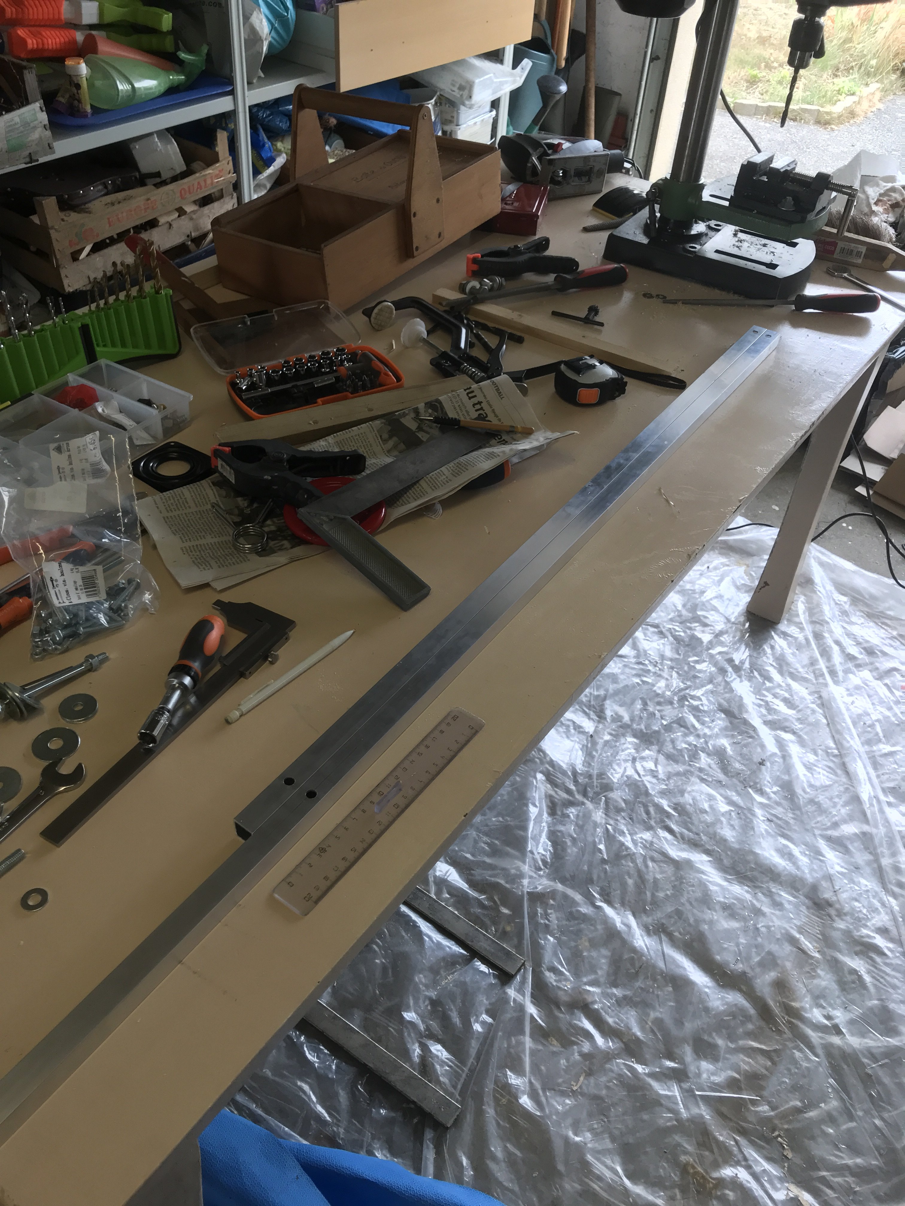 - trouver les fournitures (planche en bois, équerres, tubes alus), idéalement de recup mais j'ai pas trop de "plans récup" pour ça