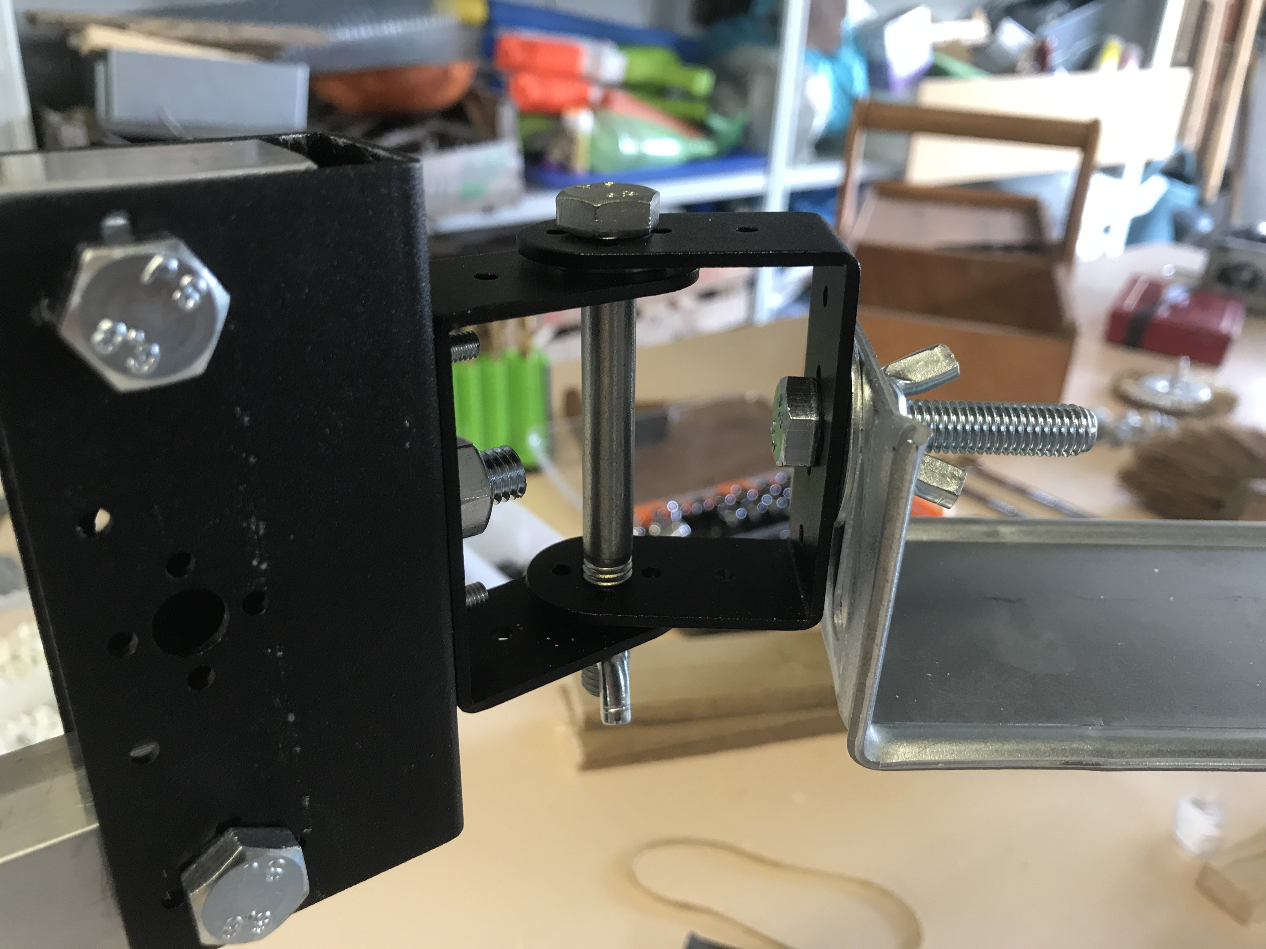 - la fixation / rotation du support en L (notamment baisser l'axe plus proche de la base du L pour réduire les contraintes dues au poids des jumelles sur l'axe)